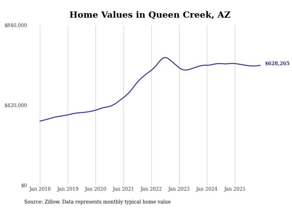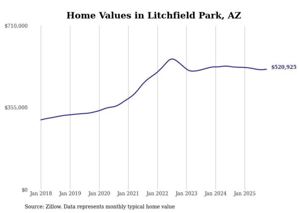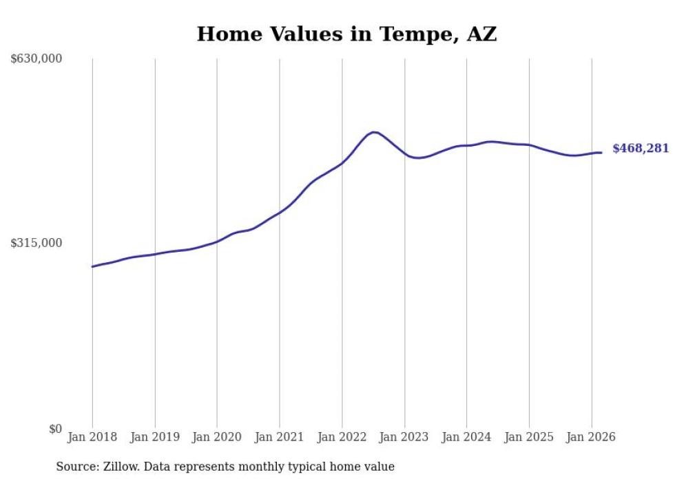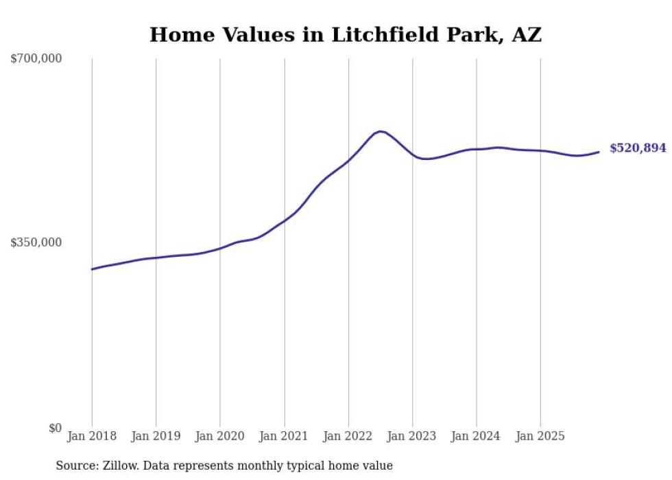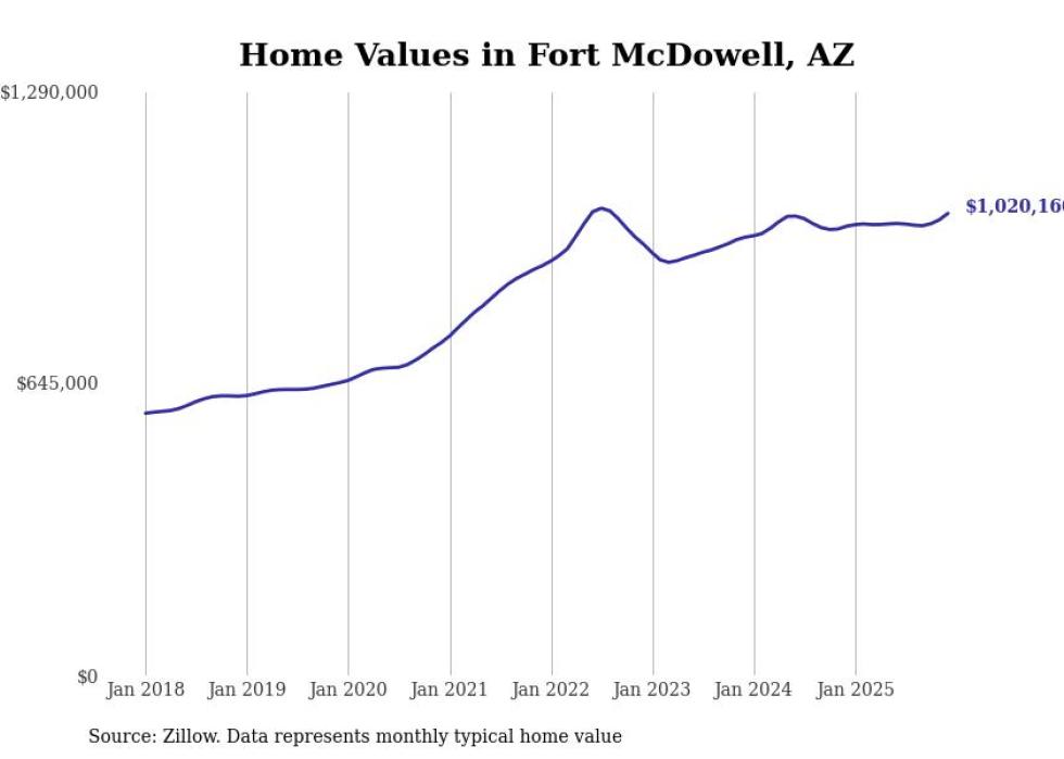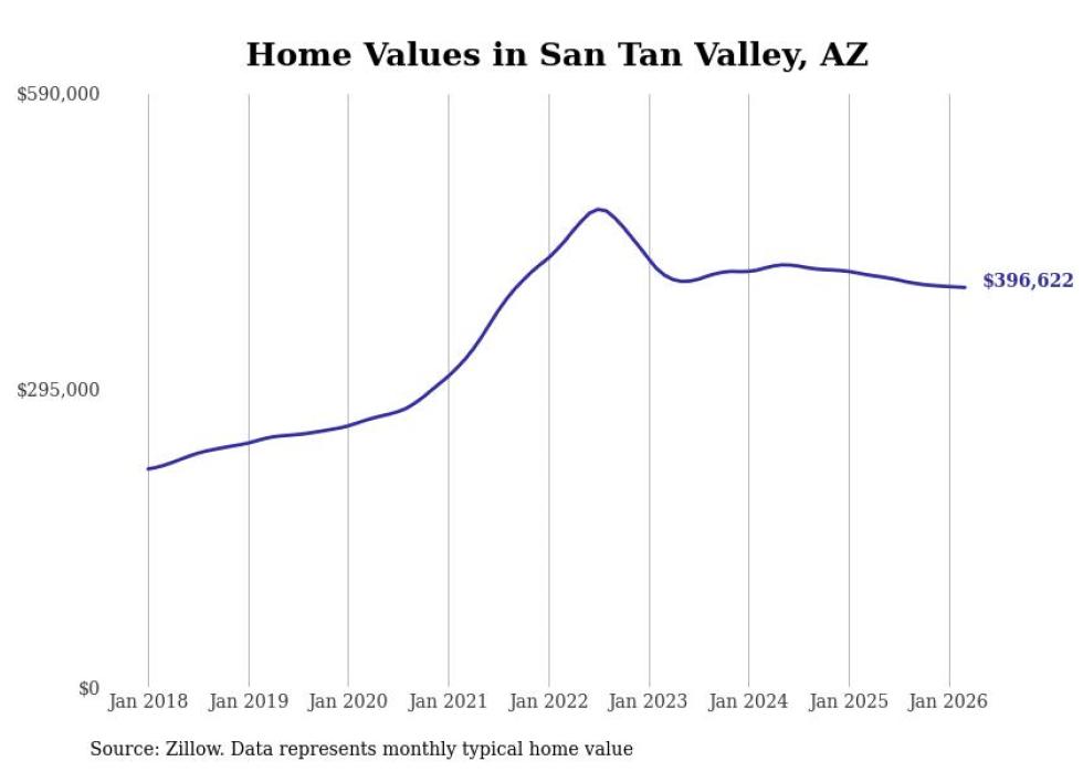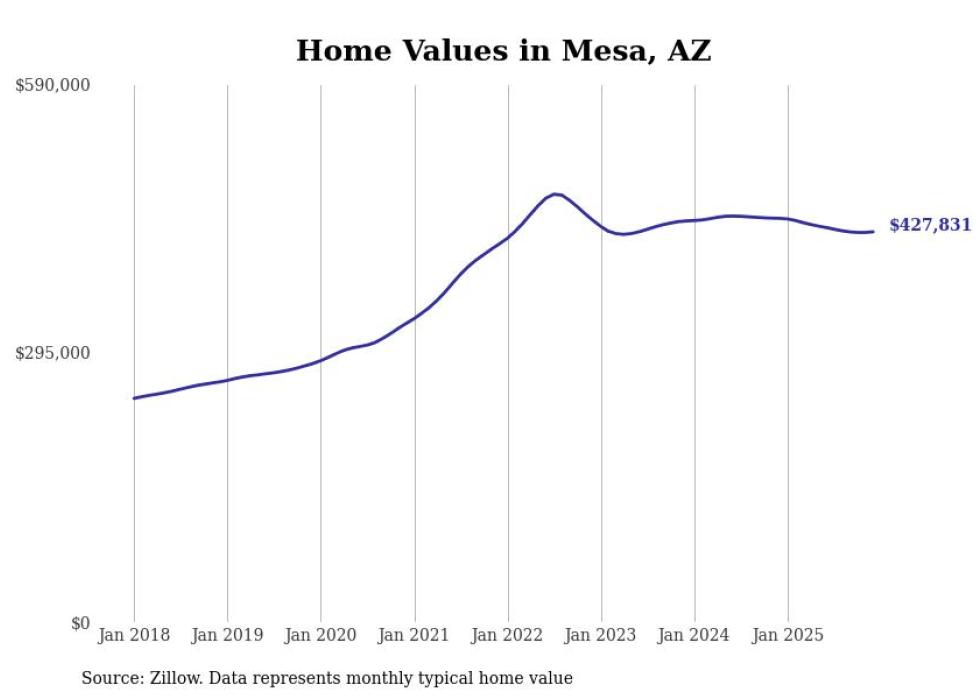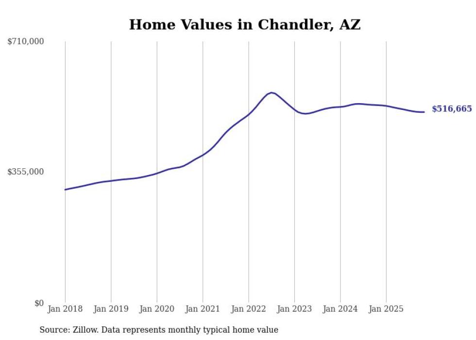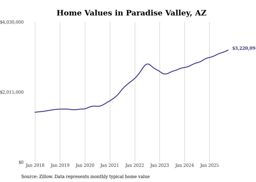 Stacker compiled a list of cities with the most expensive homes in the Phoenix metro area using data from Zillow. Charts show the monthly typical home value since January 2018. Data was available for 46 cities and towns.