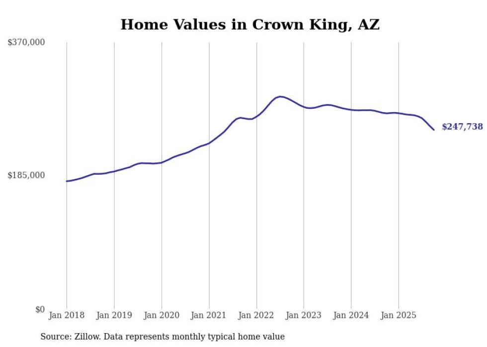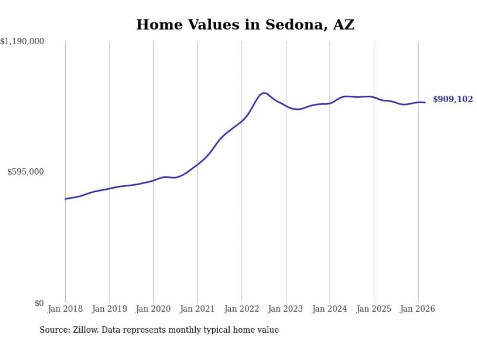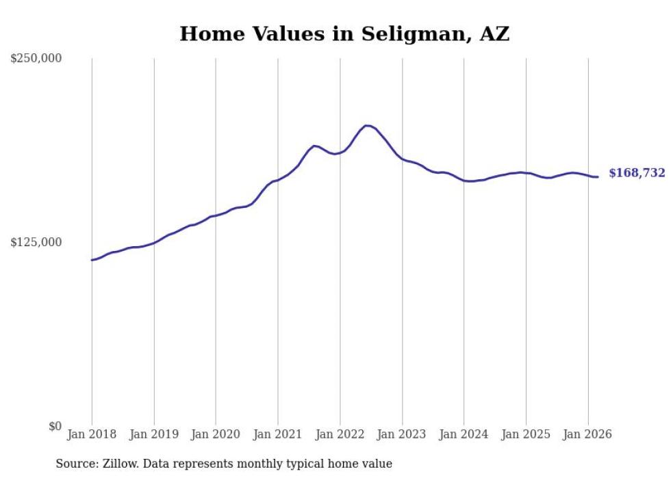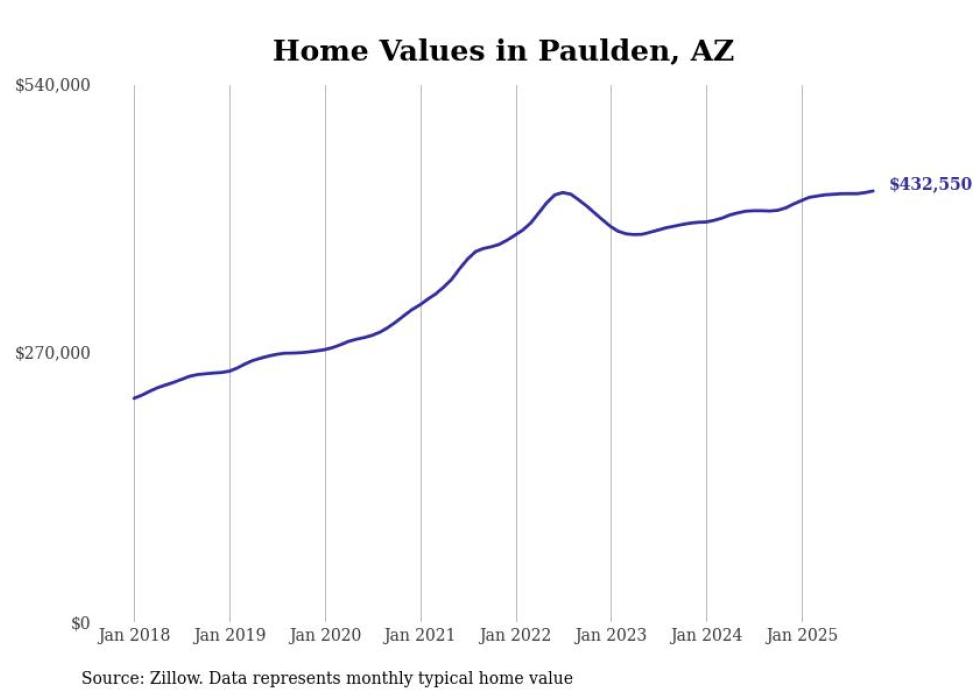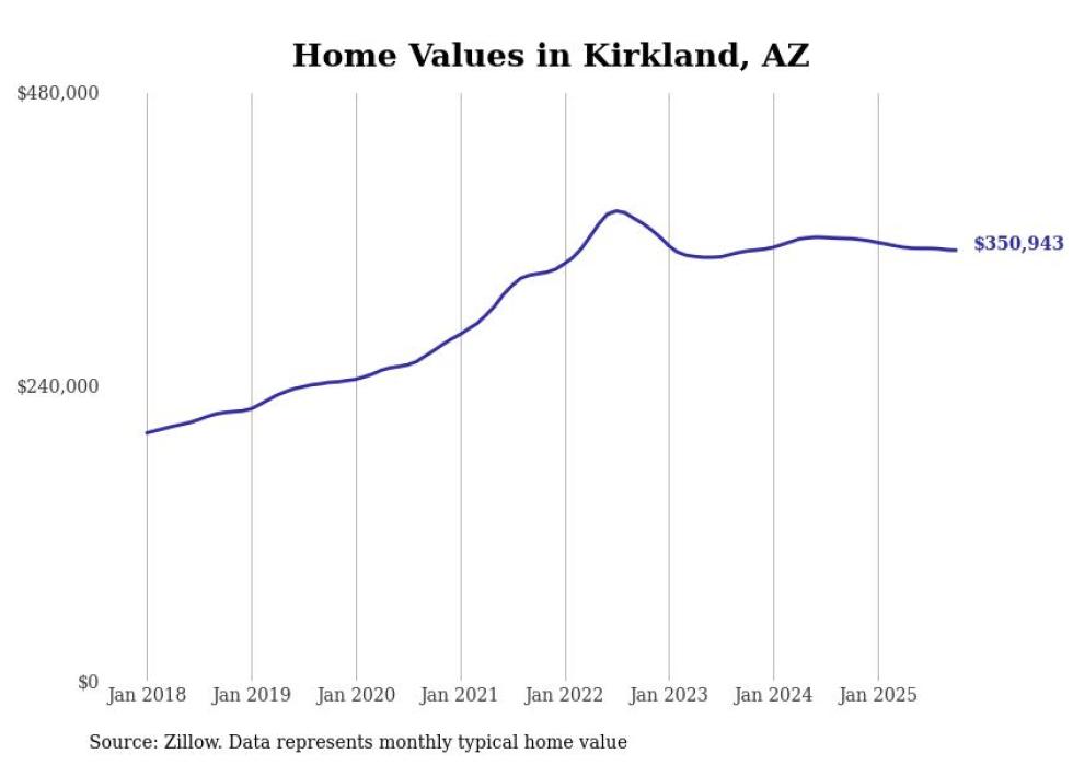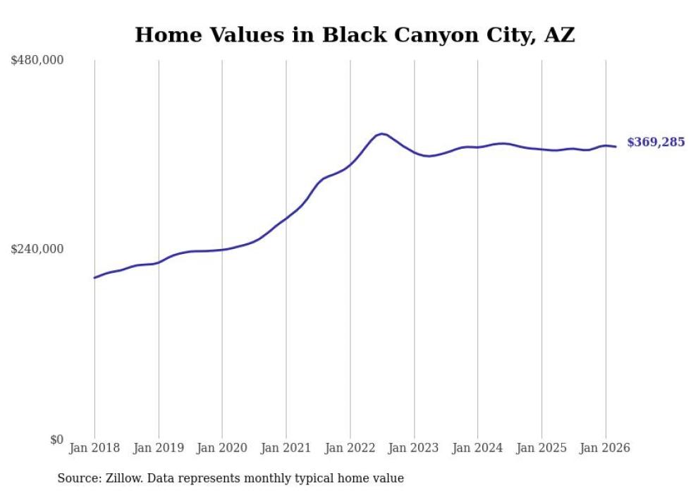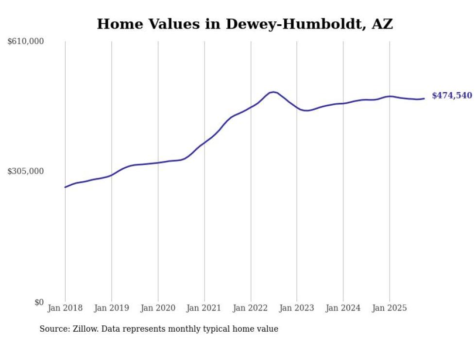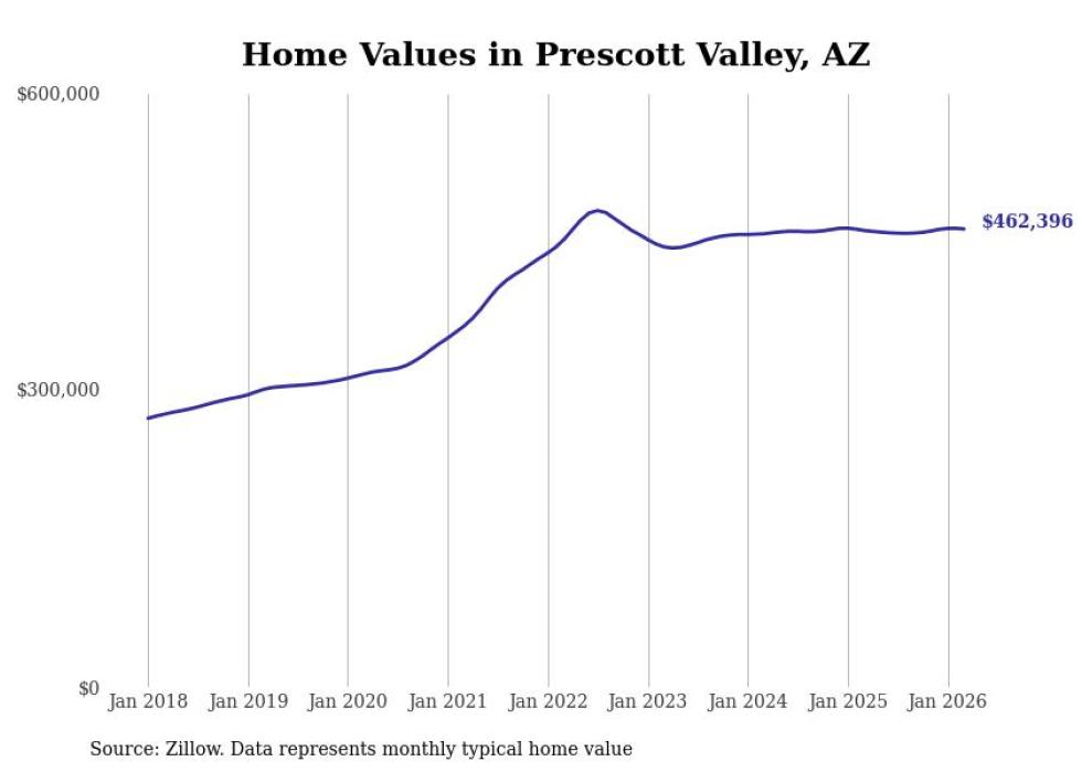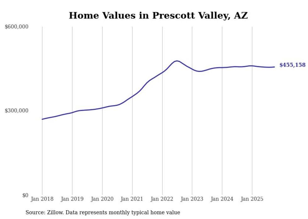 Stacker compiled a list of cities with the most expensive homes in the Prescott Valley metro area using data from Zillow. Charts show the monthly typical home value since January 2018. All 19 cities and towns with data available were included in the list.