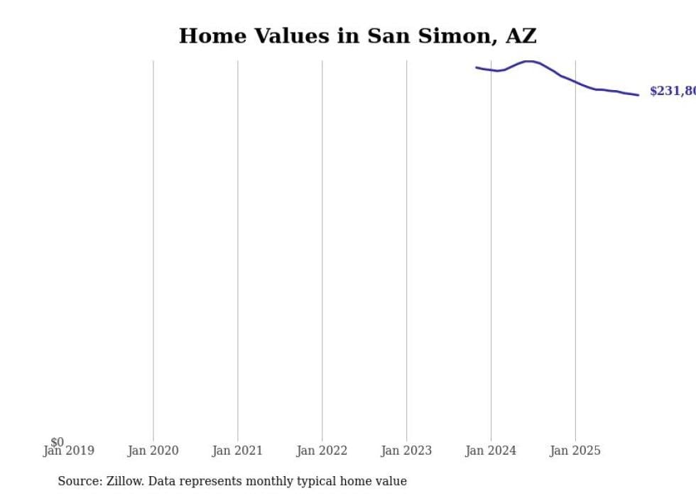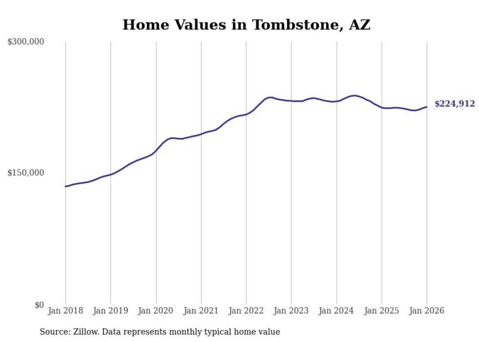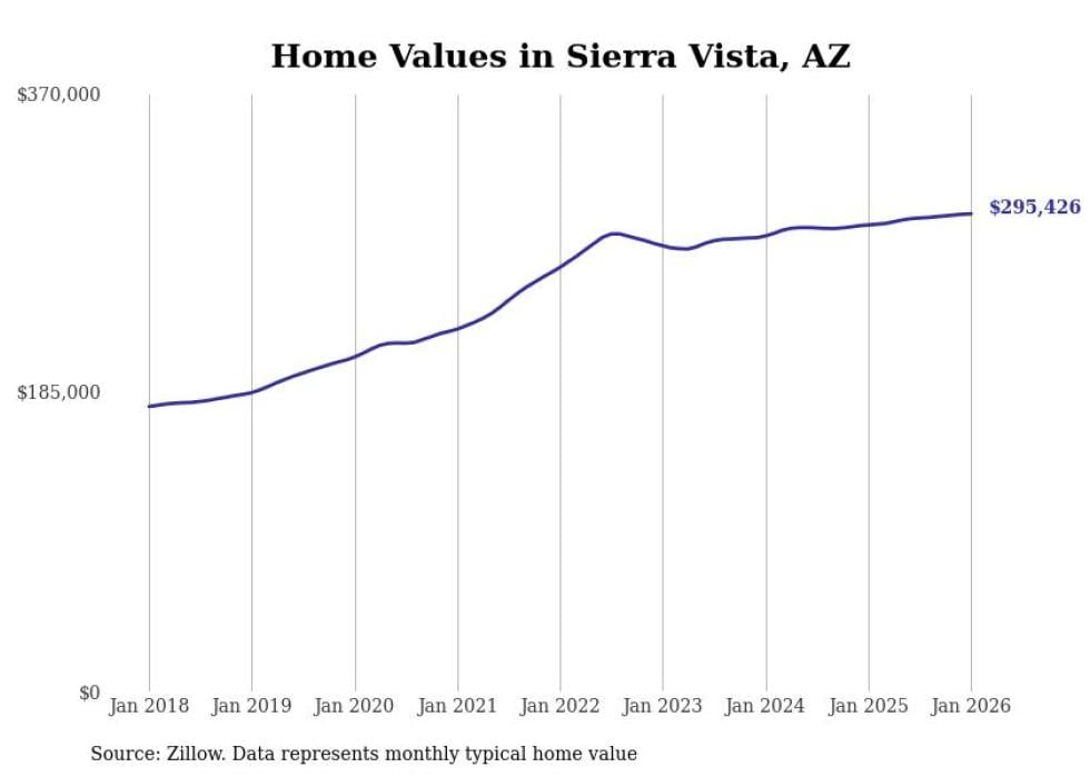 Stacker compiled a list of cities with the most expensive homes in the Sierra Vista-Douglas, AZ metro area using data from Zillow. Charts show the monthly typical home value since January 2018.
