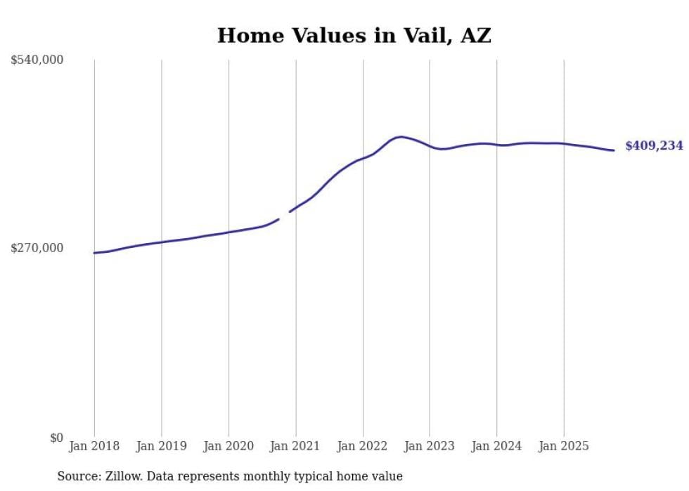 Stacker compiled a list of cities with the most expensive homes in the Tucson, AZ metro area using data from Zillow. Charts show the monthly typical home value since January 2018.