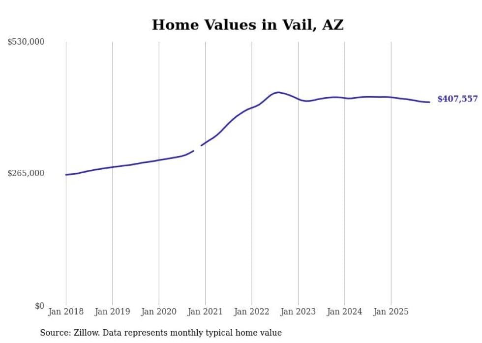 Stacker compiled a list of cities with the most expensive homes in the Tucson metro area using data from Zillow. Charts show the monthly typical home value since January 2018. All 13 cities and towns with data available were included in the list.