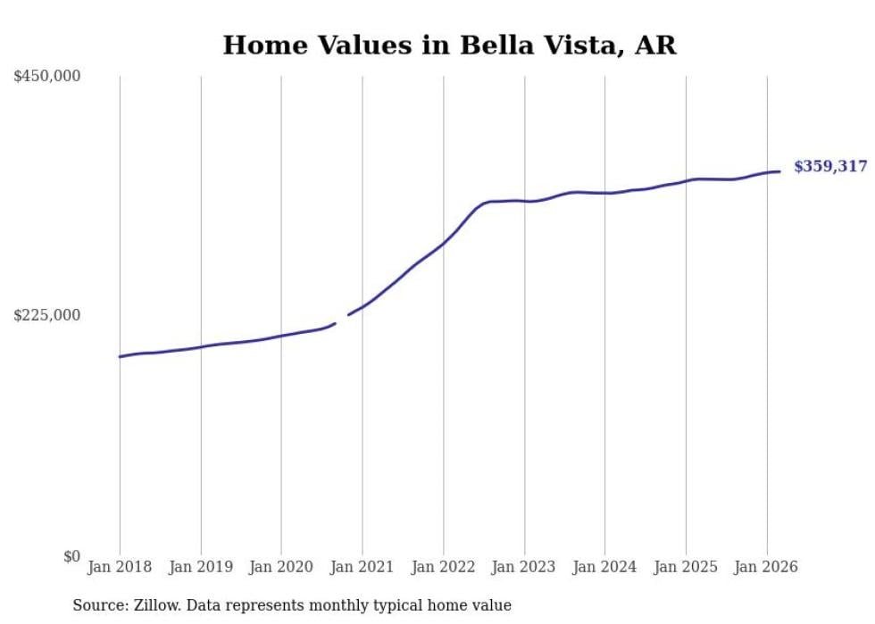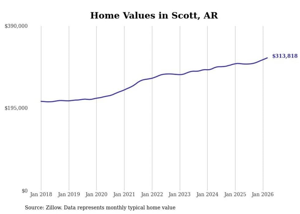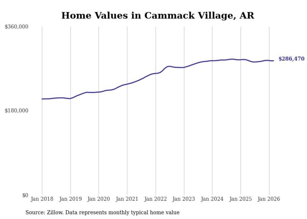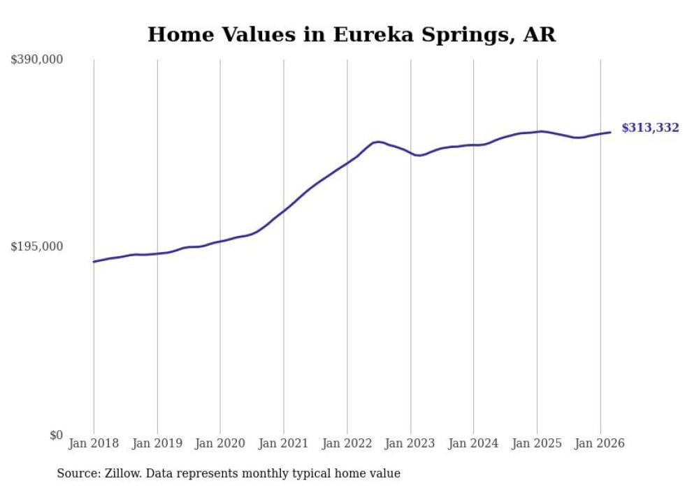 Stacker compiled a list of cities with the most expensive homes in Arkansas using data from Zillow. Cities are ranked by the Zillow Home Values Index for all homes as of March 2026. The charts in this story were created automatically using Matplotlib.