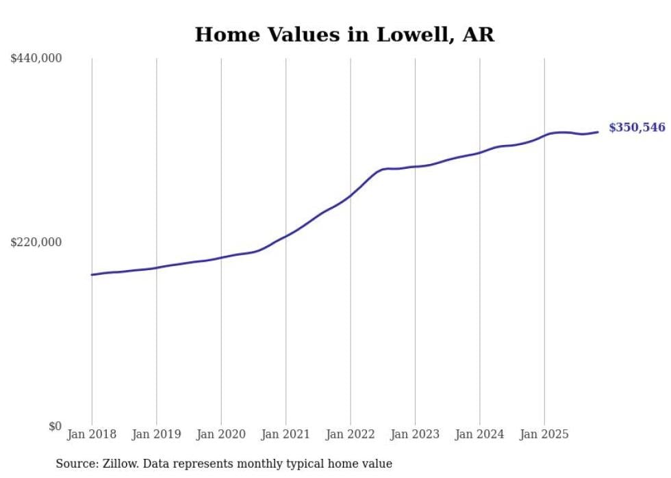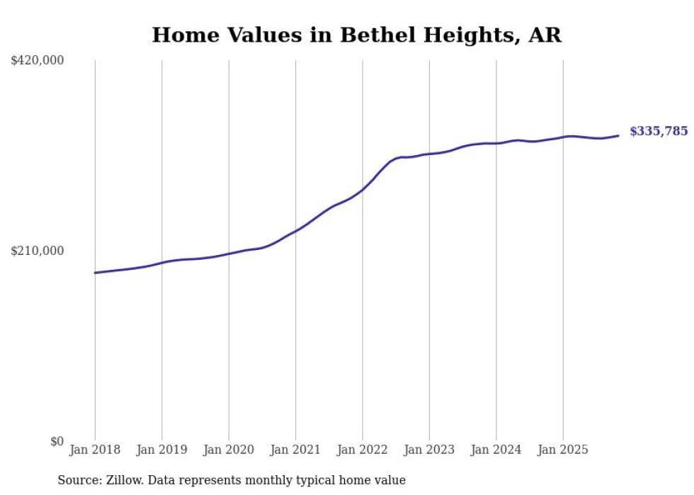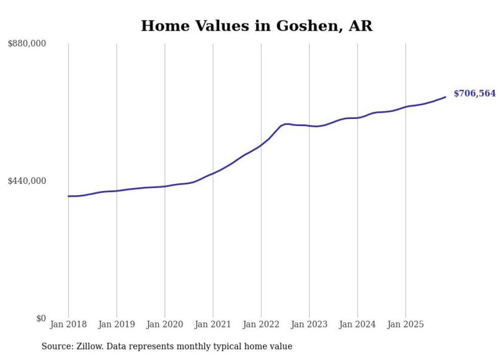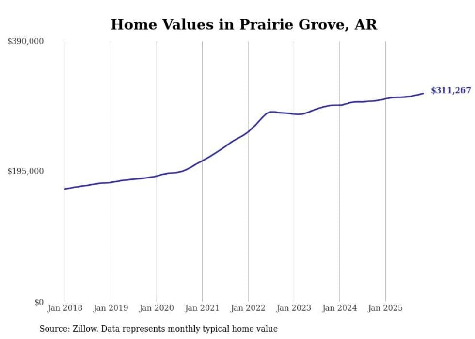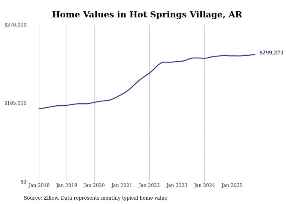 Stacker compiled a list of cities with the most expensive homes in Arkansas using data from Zillow. Cities are ranked by the Zillow Home Values Index for all homes as of November 2025. The charts in this story were created automatically using Matplotlib.