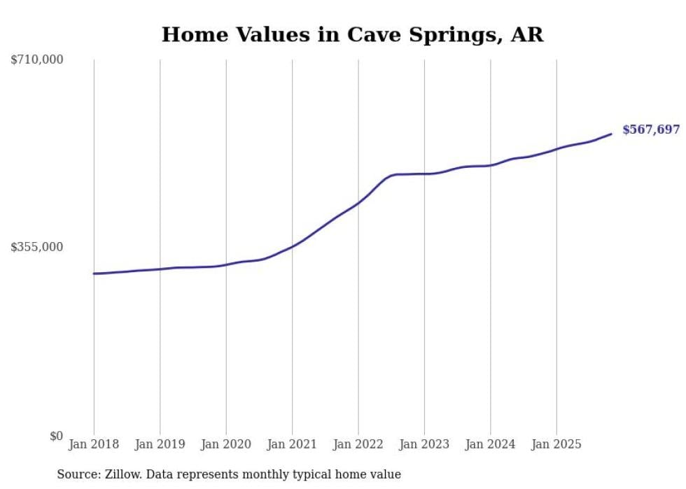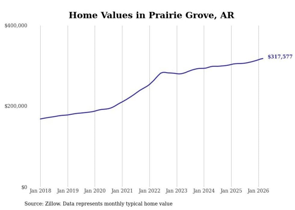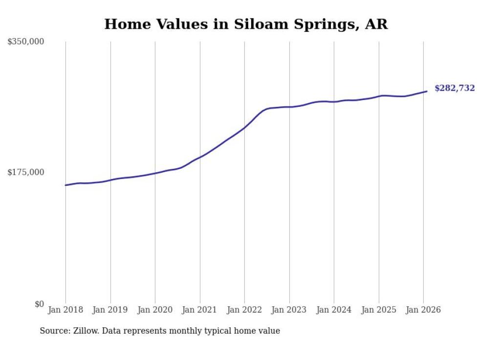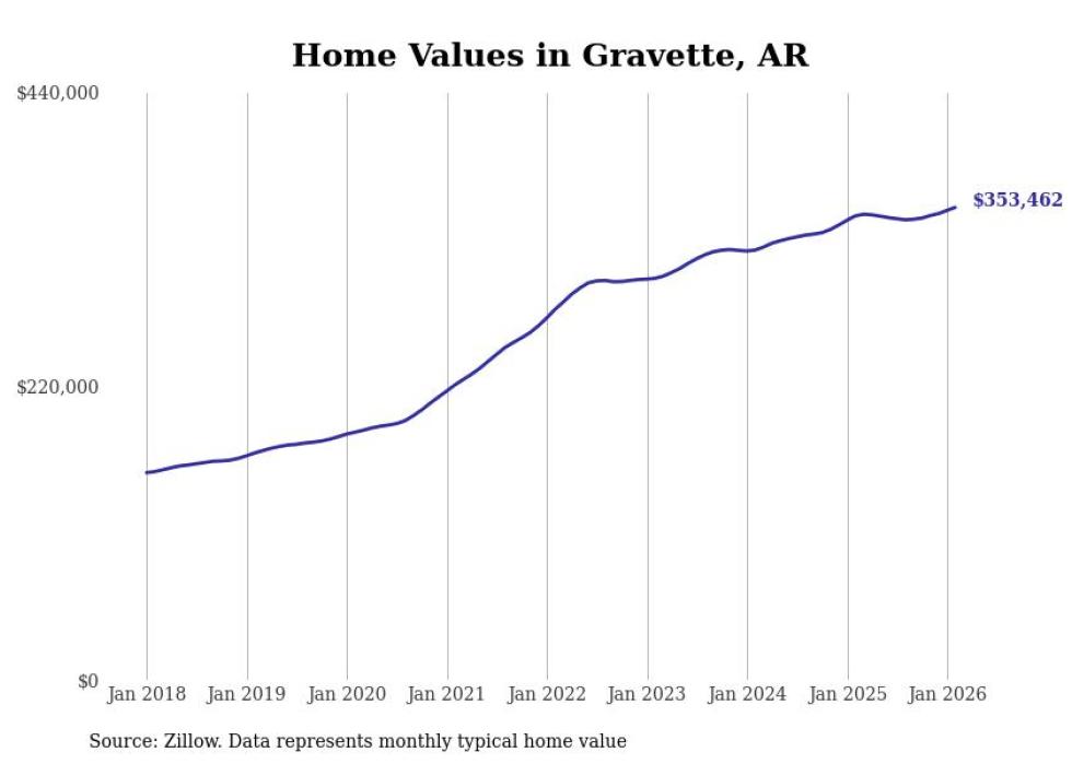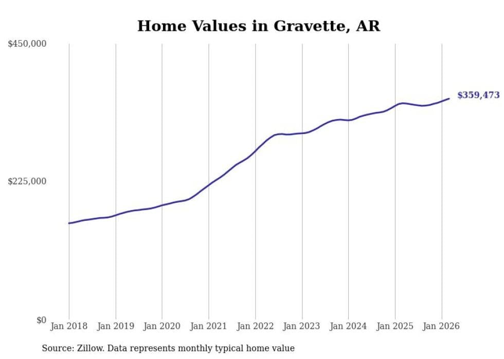 Stacker compiled a list of cities with the most expensive homes in the Fayetteville-Springdale-Rogers, AR metro area using data from Zillow. Charts show the monthly typical home value since January 2018.