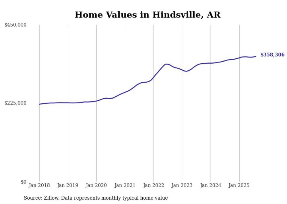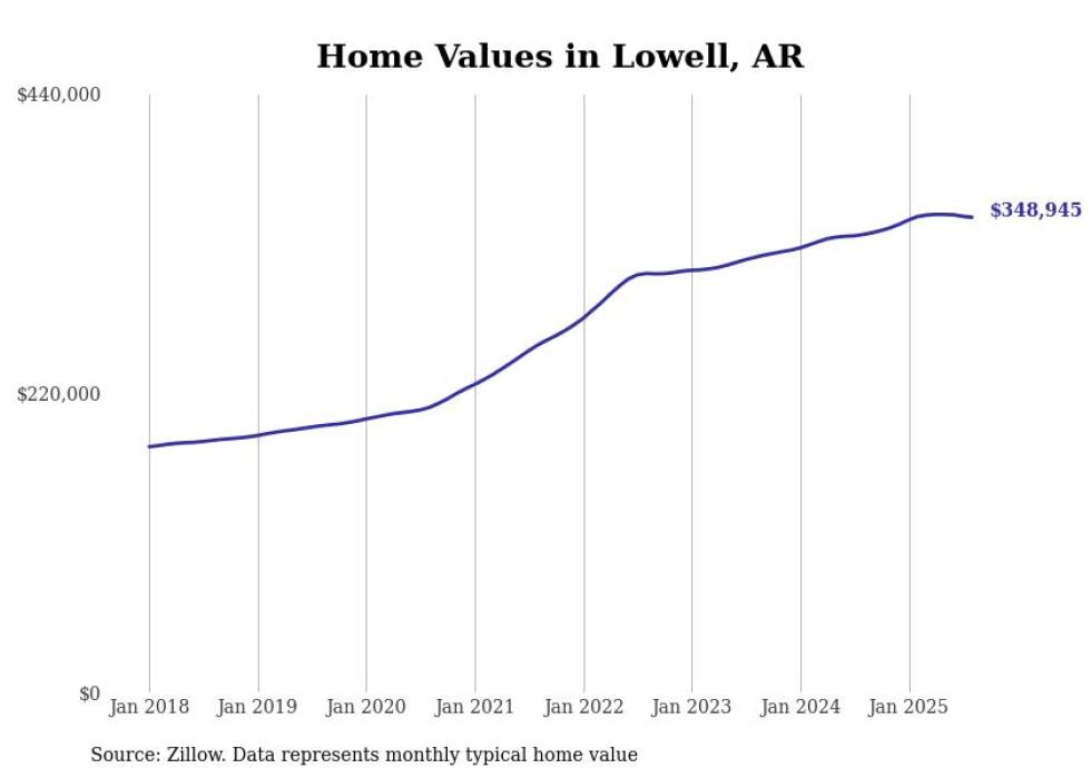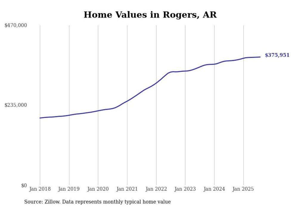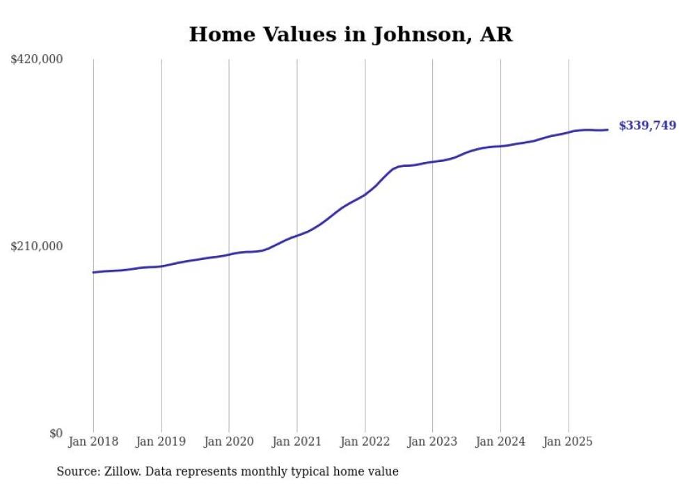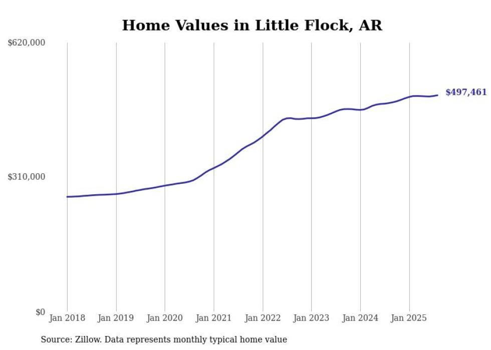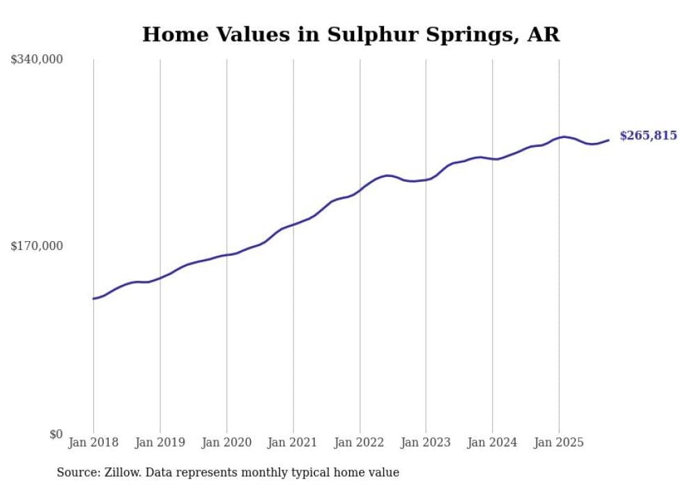 Stacker compiled a list of cities with the most expensive homes in the Fayetteville metro area using data from Zillow. Charts show the monthly typical home value since January 2018. All 29 cities and towns with data available were included in the list.
