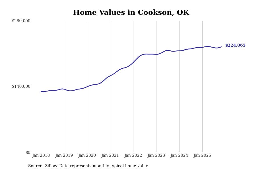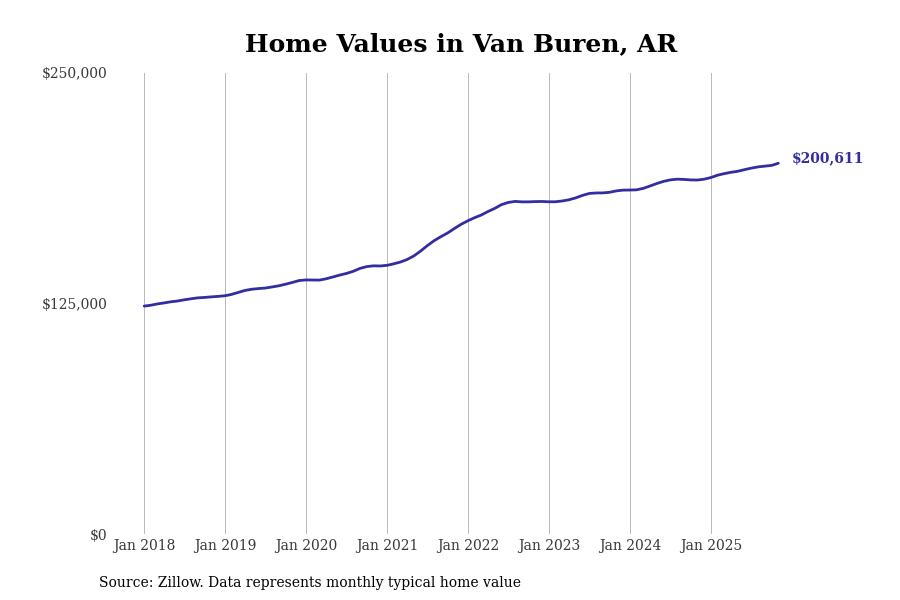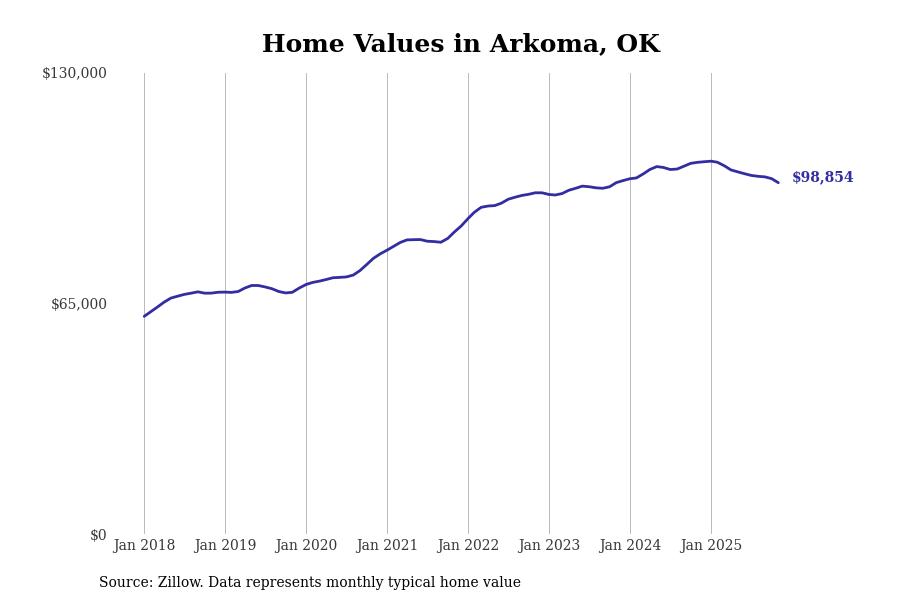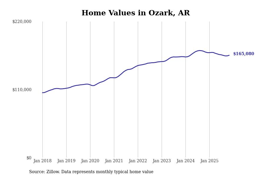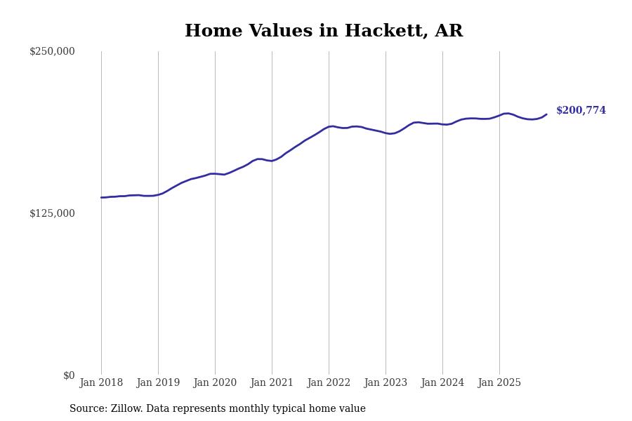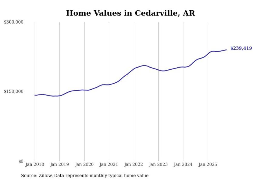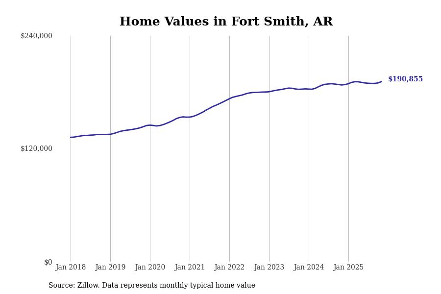 Stacker compiled a list of cities with the most expensive homes in the Fort Smith, AR-OK metro area using data from Zillow. Charts show the monthly typical home value since January 2018.