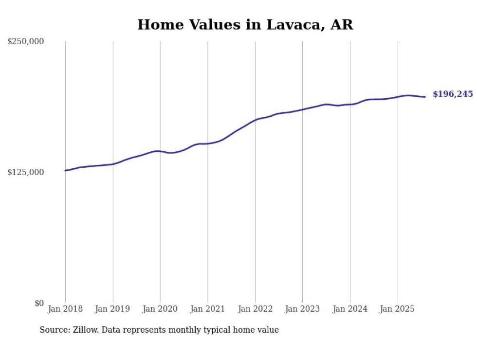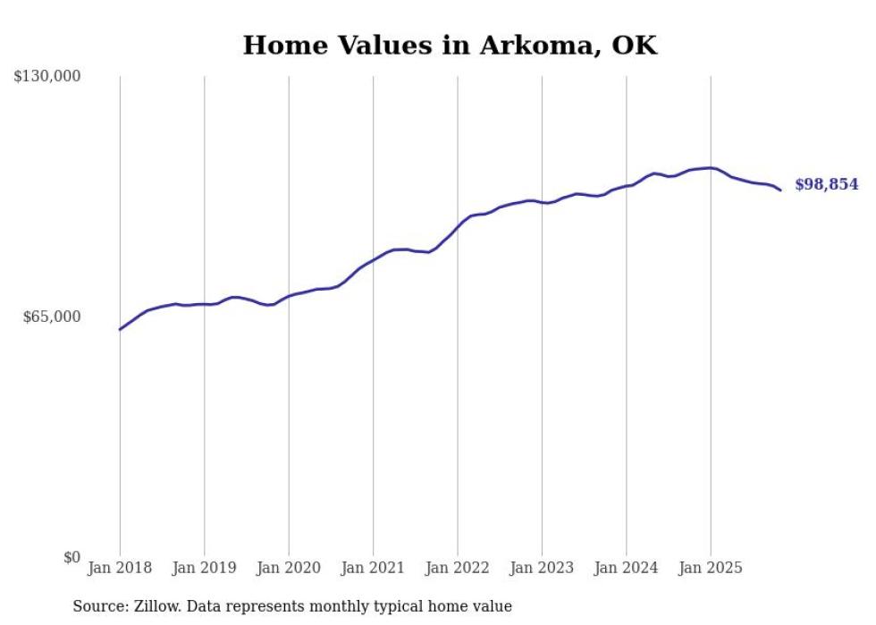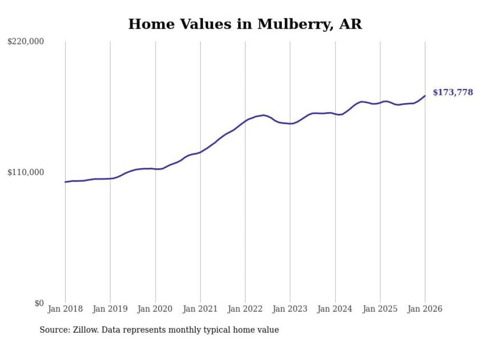 Stacker compiled a list of cities with the most expensive homes in the Fort Smith metro area using data from Zillow. Charts show the monthly typical home value since January 2018. All 24 cities and towns with data available were included in the list.