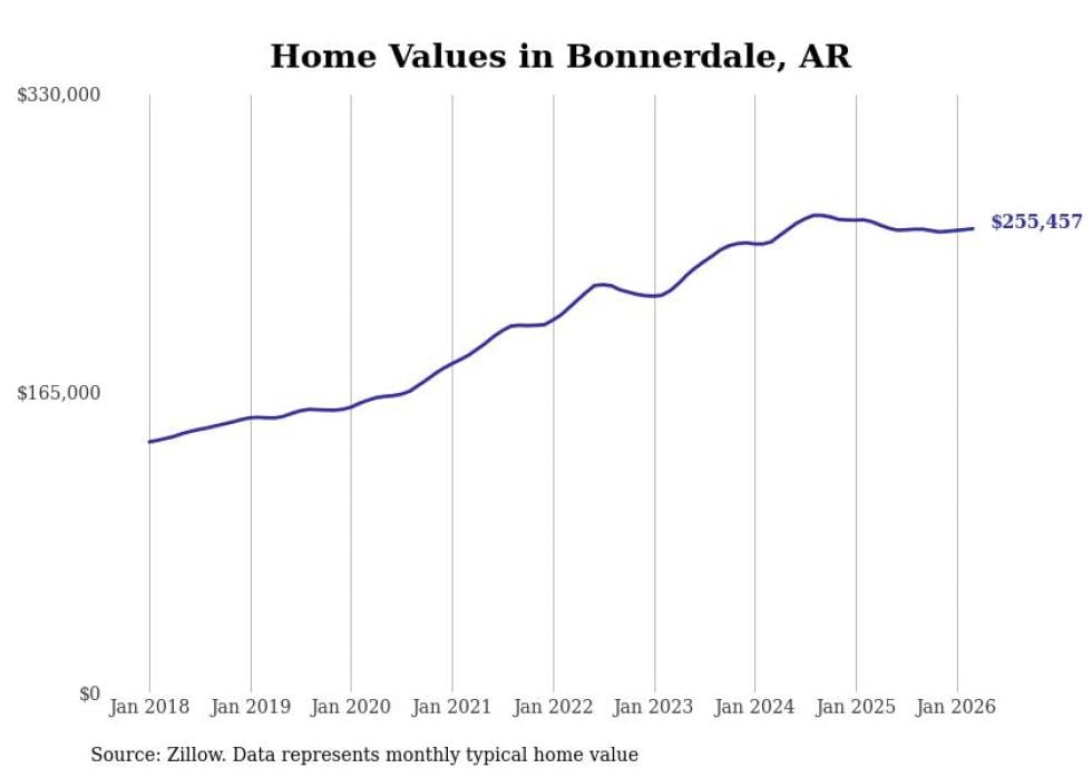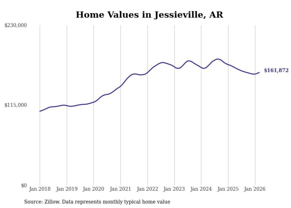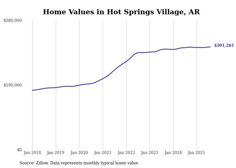 Stacker compiled a list of cities with the most expensive homes in the Hot Springs metro area using data from Zillow. Charts show the monthly typical home value since January 2018. All 7 cities and towns with data available were included in the list.