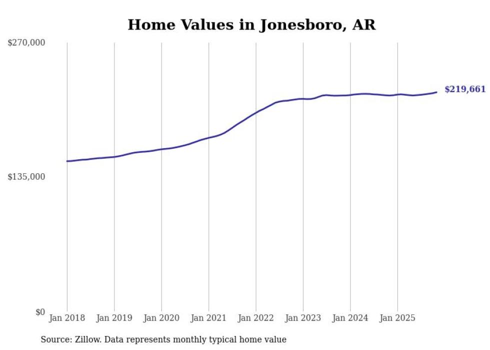 Cities with the fastest-growing home prices in the Jonesboro metro area