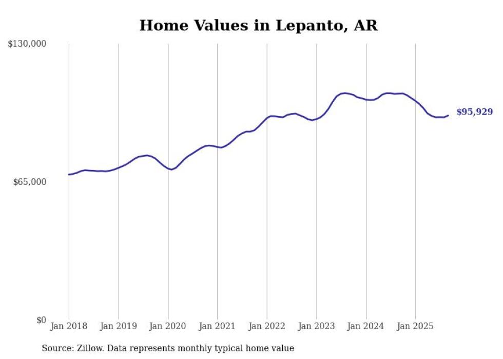 - Typical home value: $95,929 (#8 most expensive city in metro)