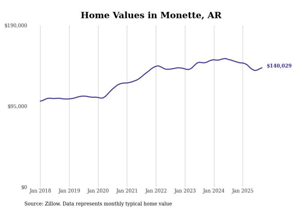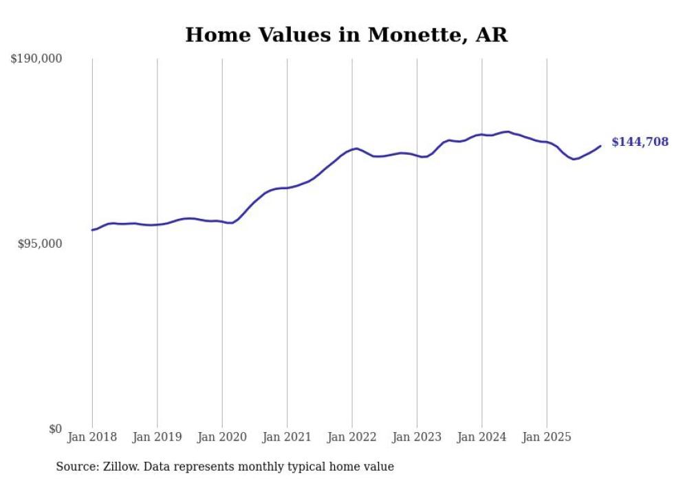 Stacker compiled a list of cities with the most expensive homes in the Jonesboro, AR metro area using data from Zillow. Charts show the monthly typical home value since January 2018.