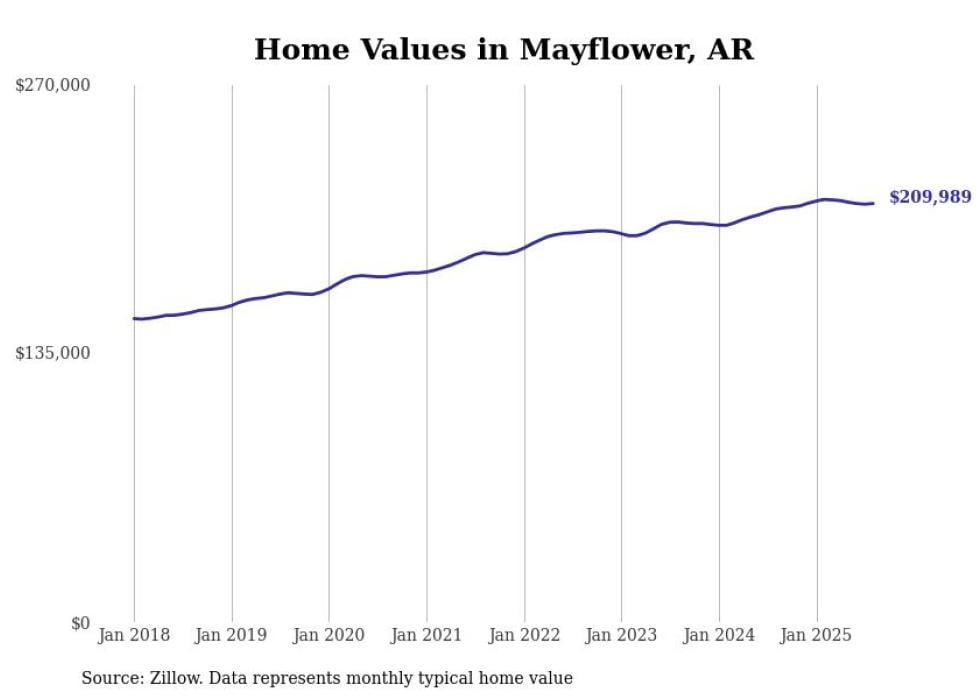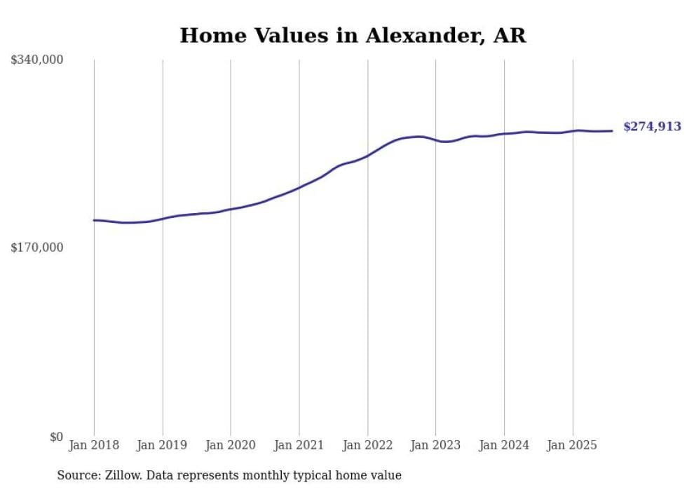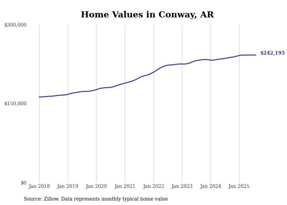 Stacker compiled a list of cities with the most expensive homes in the Little Rock metro area using data from Zillow. Charts show the monthly typical home value since January 2018. Data was available for 37 cities and towns.