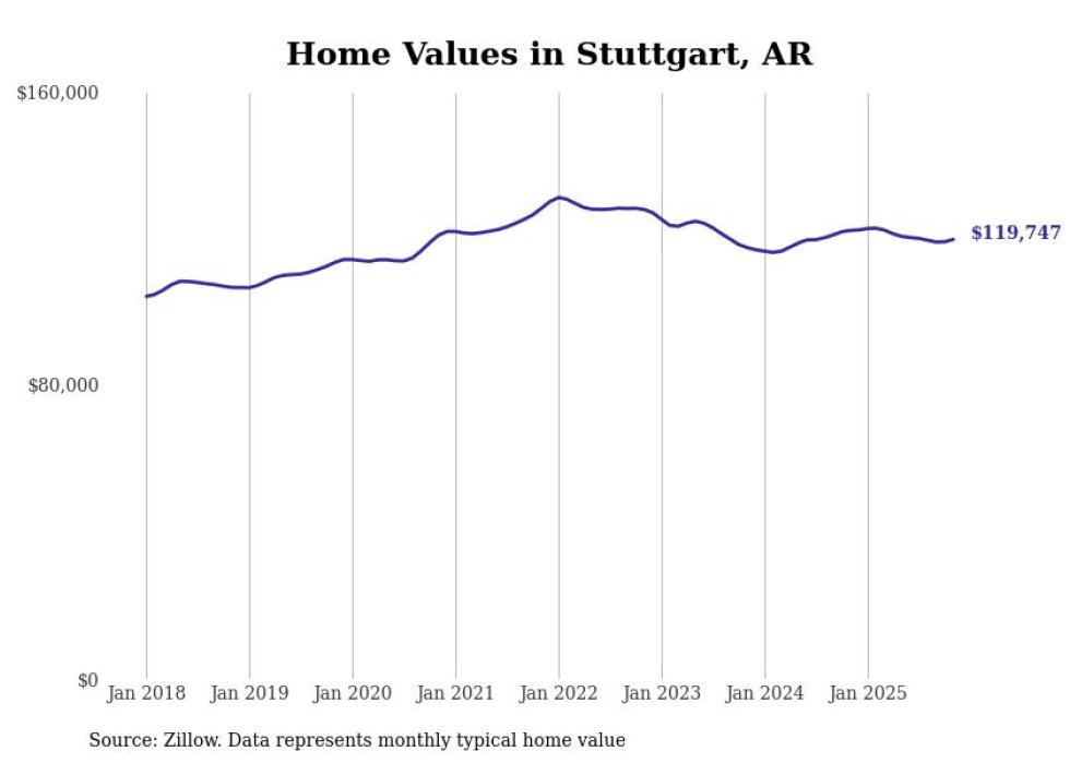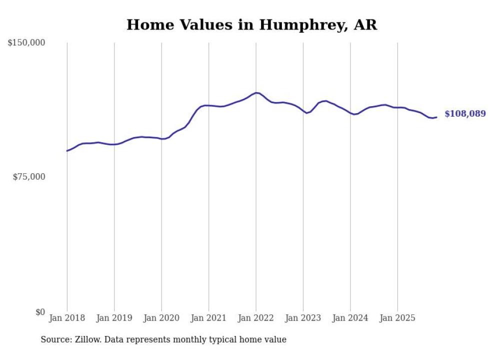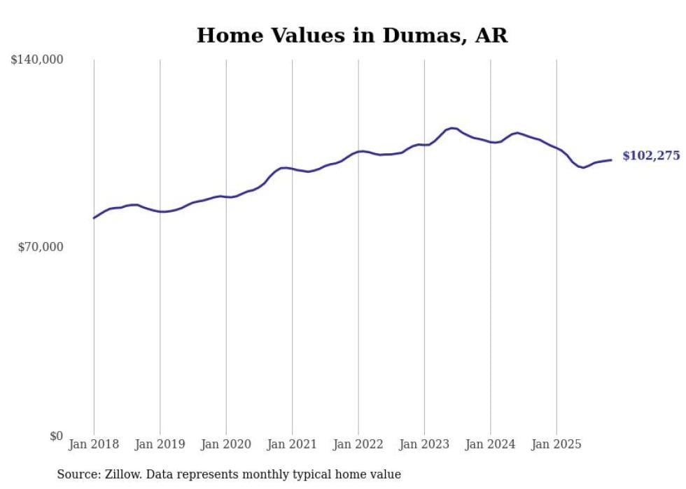 Cities with the fastest-growing home prices in the Pine Bluff metro area