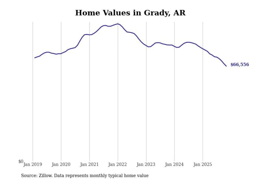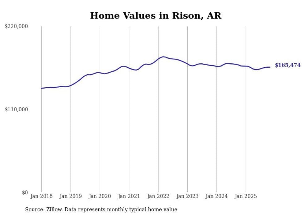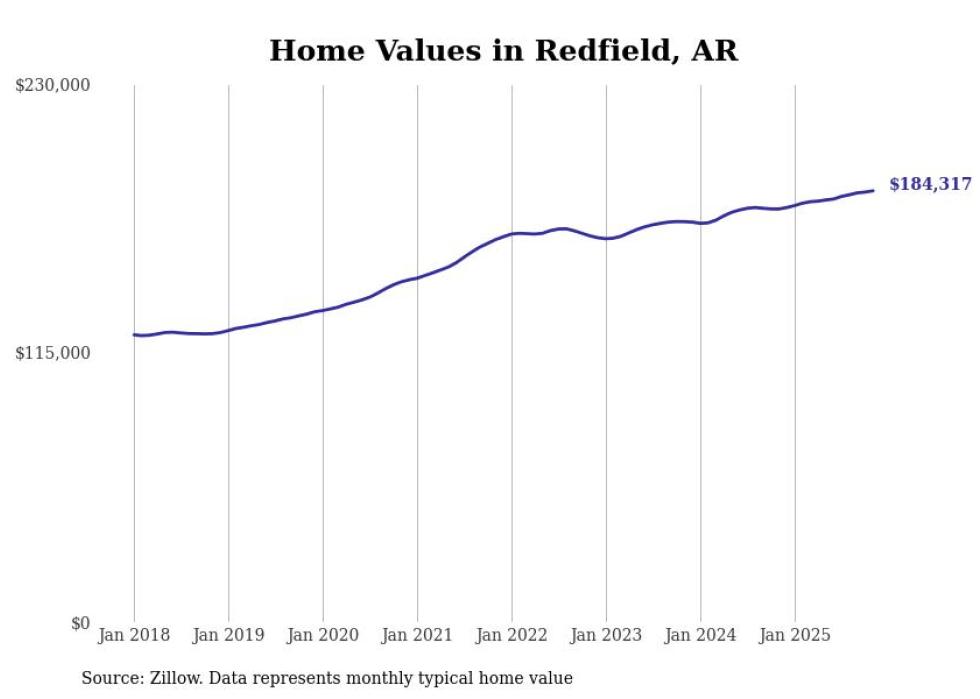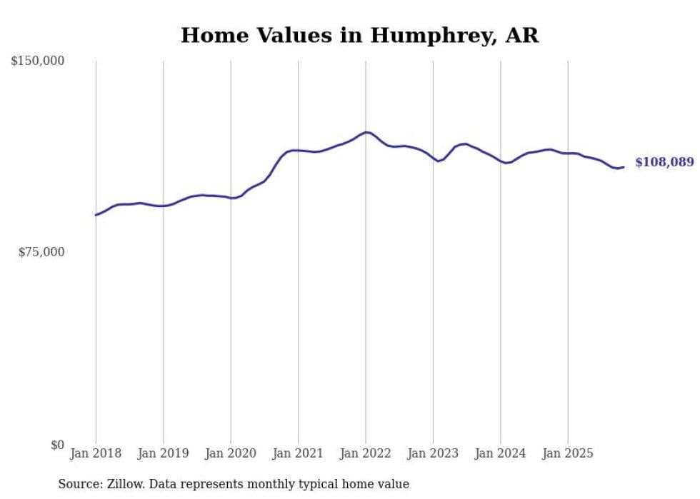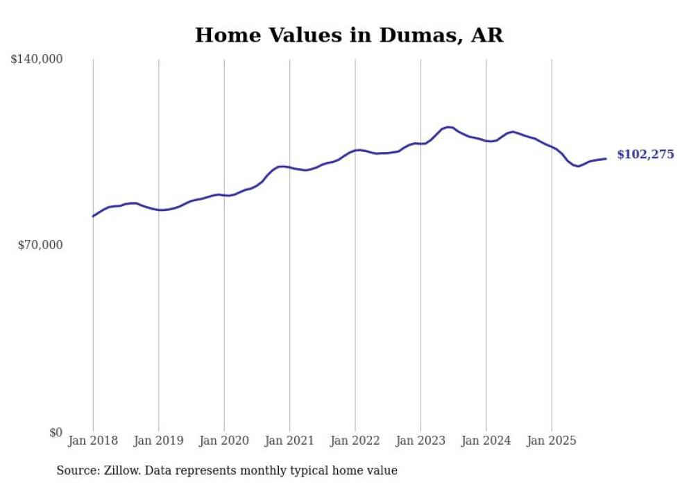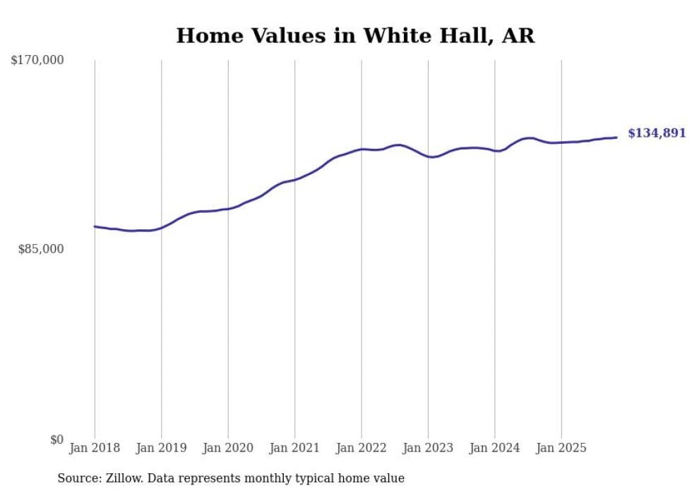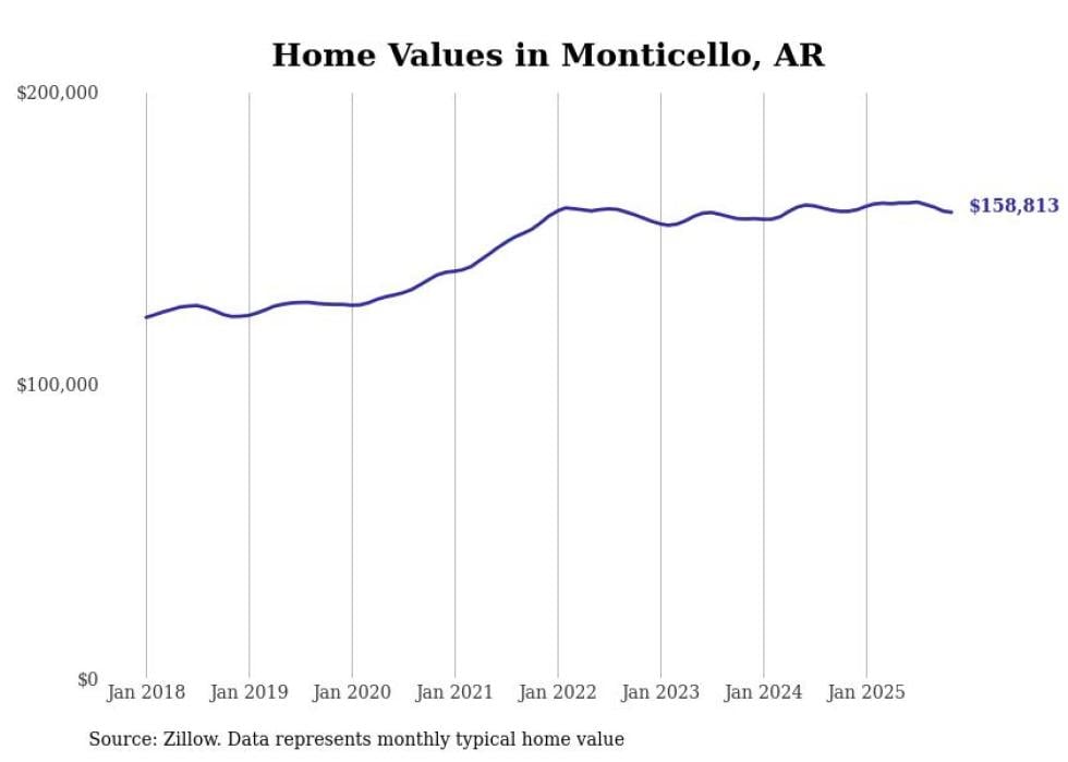 Stacker compiled a list of cities with the most expensive homes in the Pine Bluff metro area using data from Zillow. Charts show the monthly typical home value since January 2018. All 10 cities and towns with data available were included in the list.