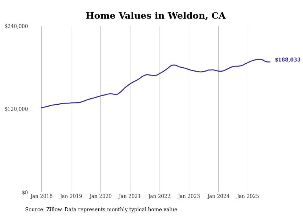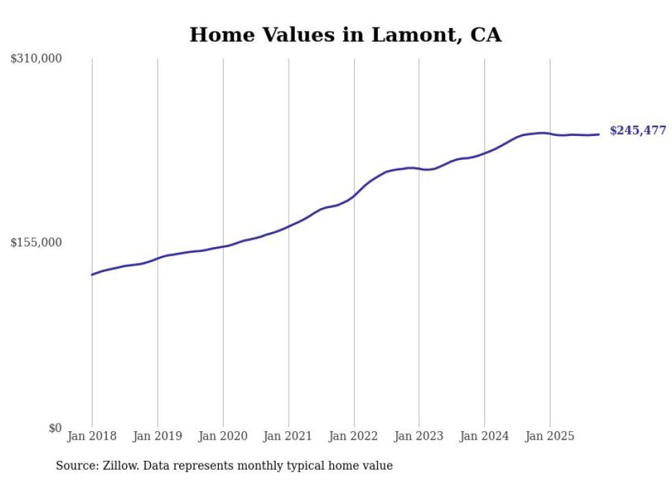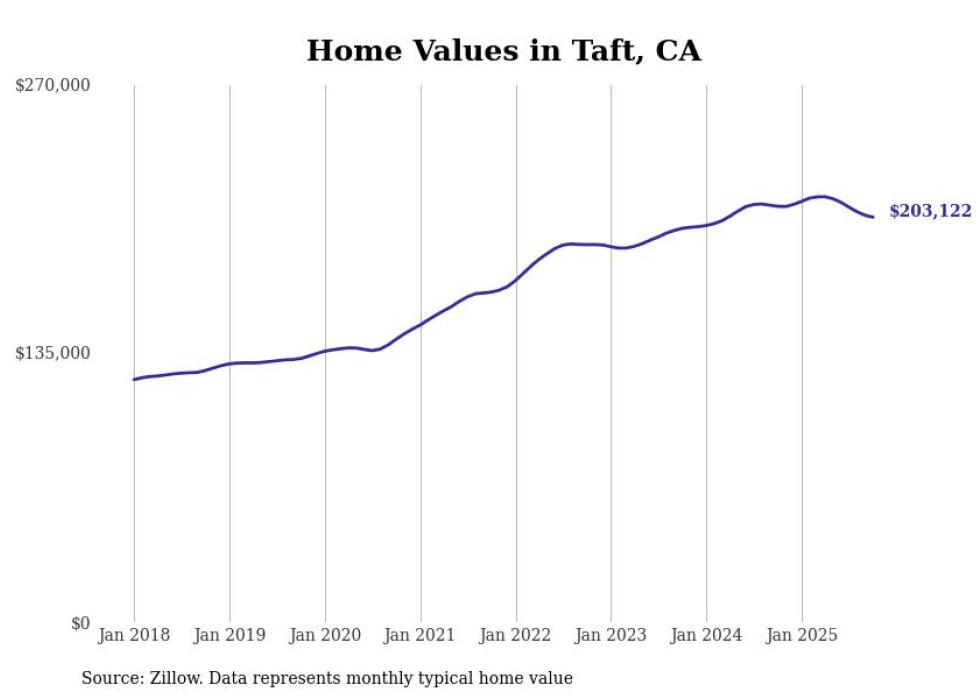 Stacker compiled a list of cities with the most expensive homes in the Bakersfield metro area using data from Zillow. Charts show the monthly typical home value since January 2018. All 28 cities and towns with data available were included in the list.