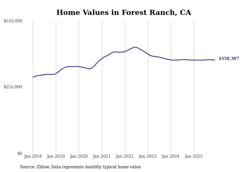 Stacker compiled a list of cities with the most expensive homes in the Chico, CA metro area using data from Zillow. Charts show the monthly typical home value since January 2018.