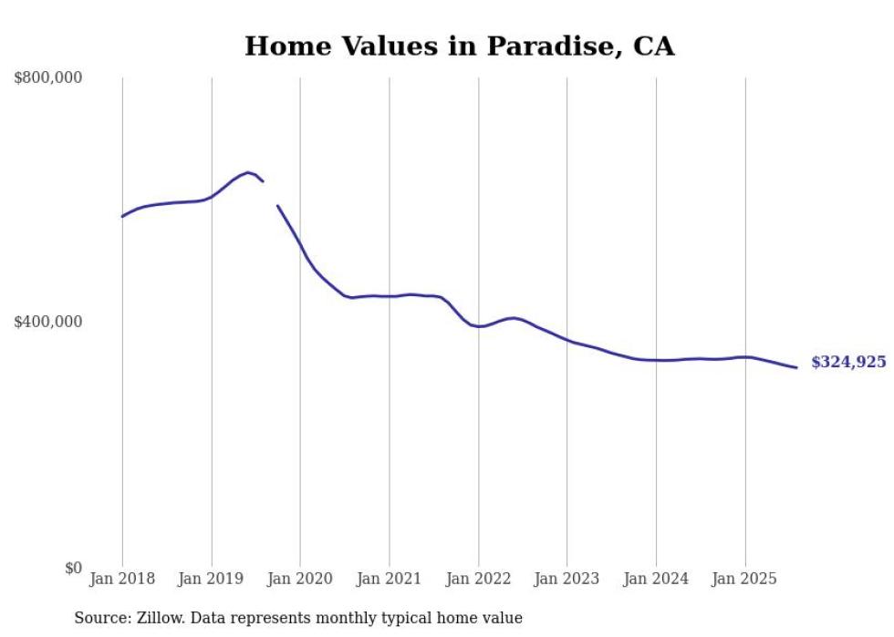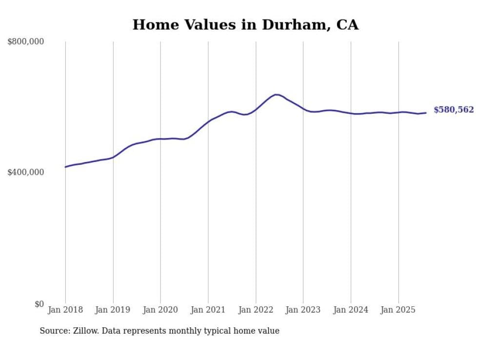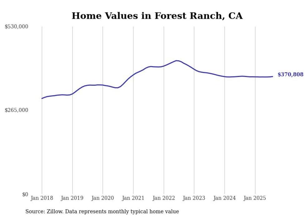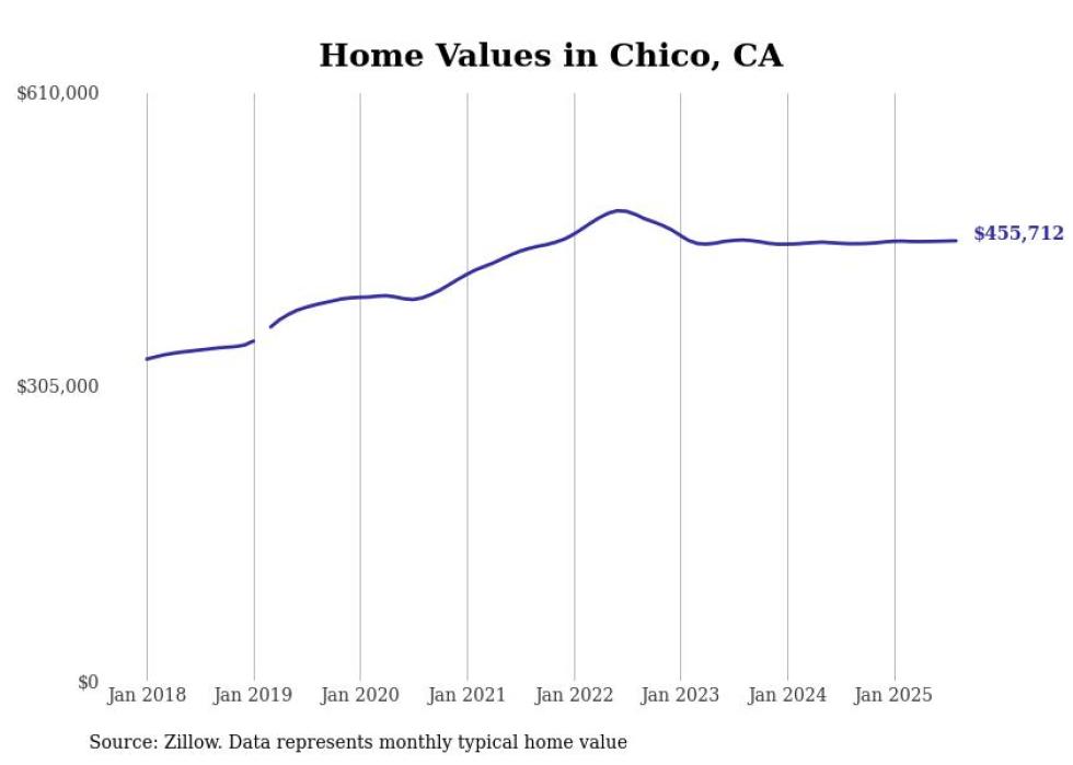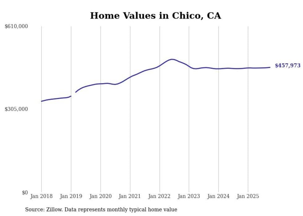 Stacker compiled a list of cities with the most expensive homes in the Chico metro area using data from Zillow. Charts show the monthly typical home value since January 2018. All 14 cities and towns with data available were included in the list.