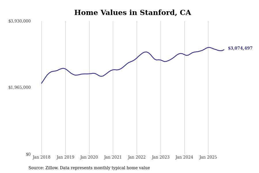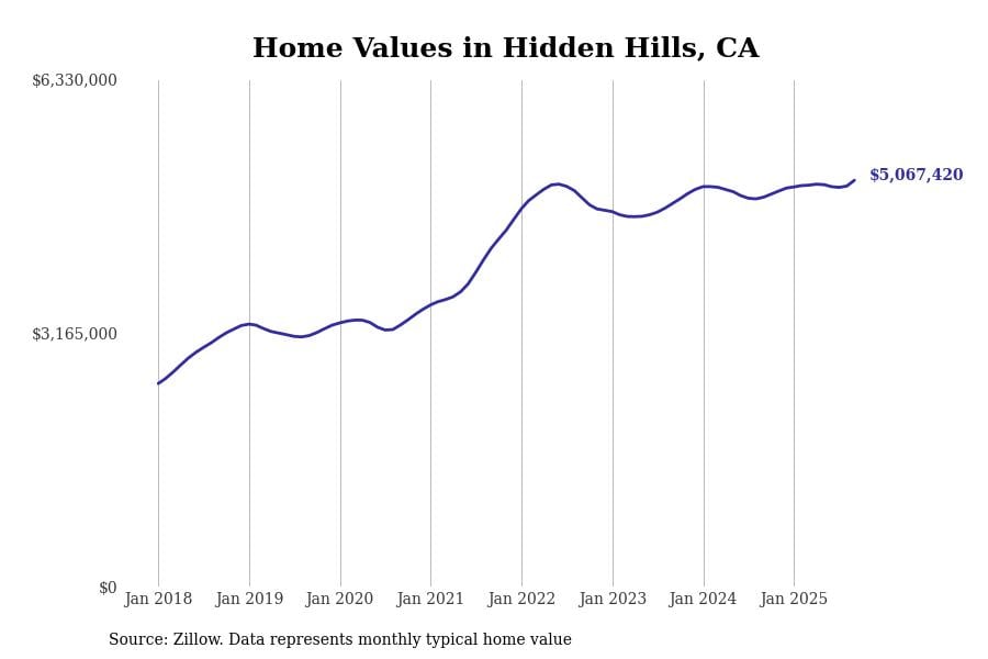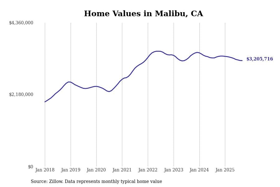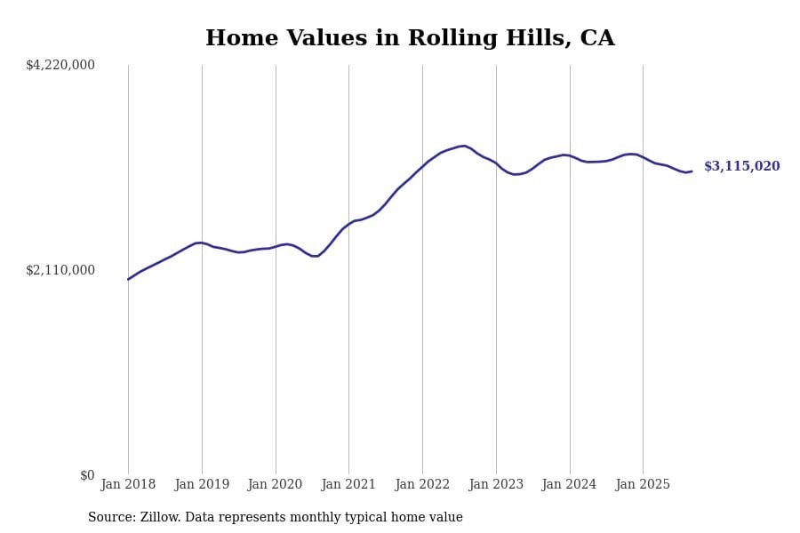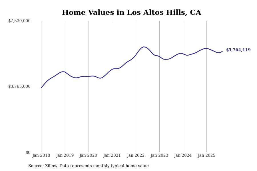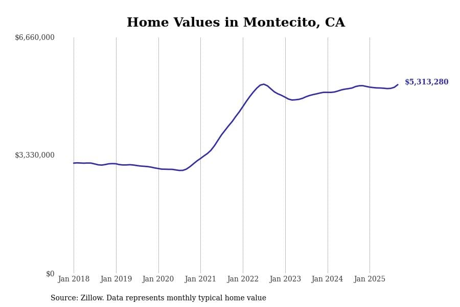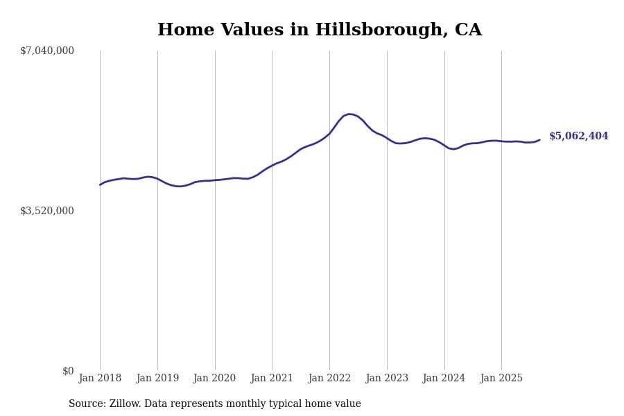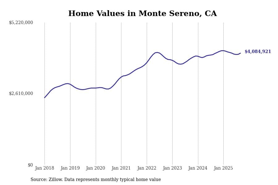 Stacker compiled a list of cities with the most expensive homes in California using data from Zillow. Cities are ranked by the Zillow Home Values Index for all homes as of September 2025. The charts in this story were created automatically using Matplotlib.
