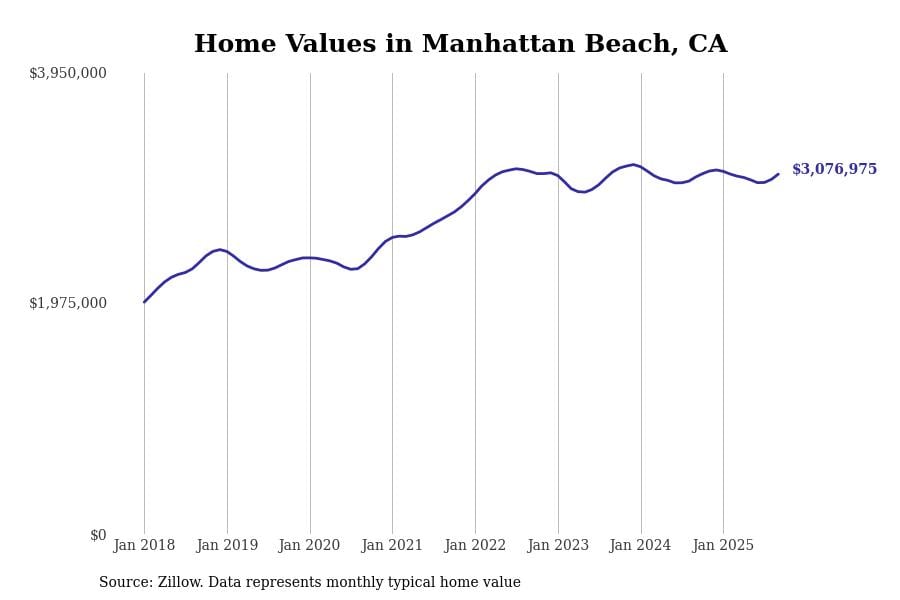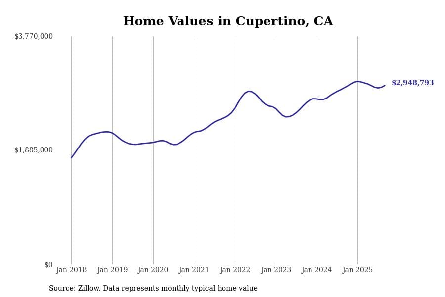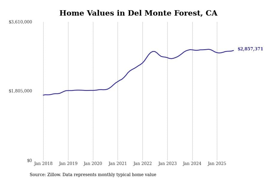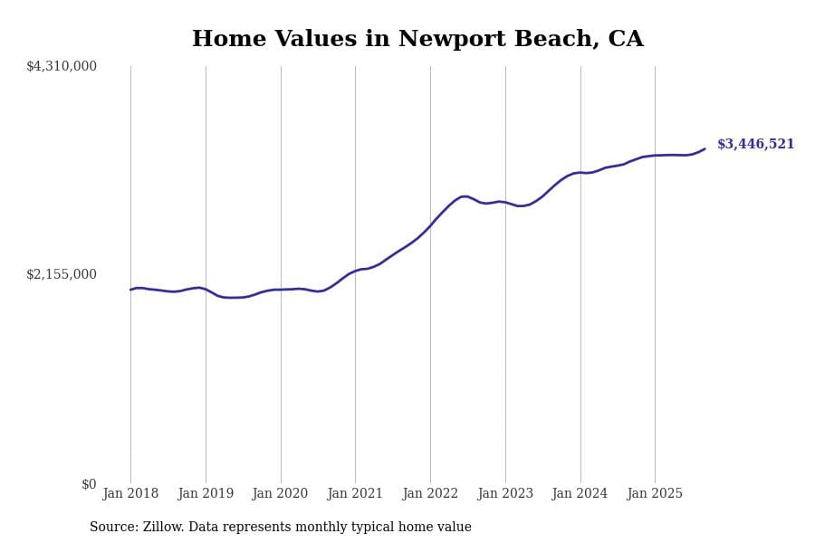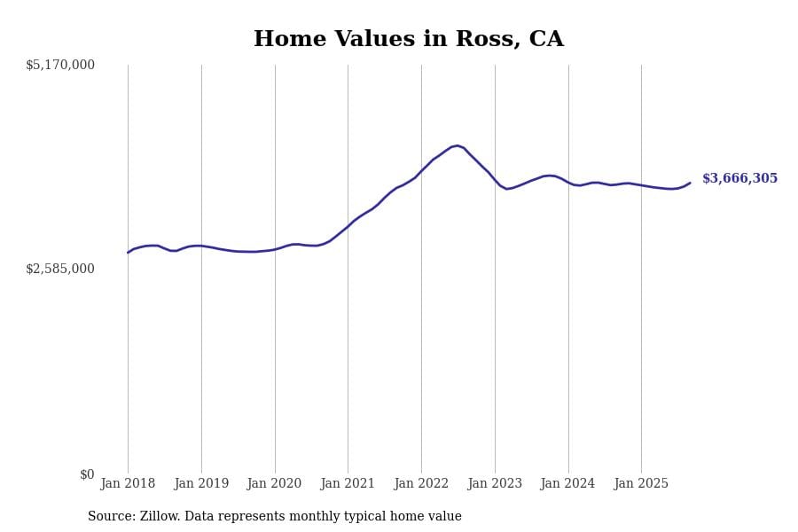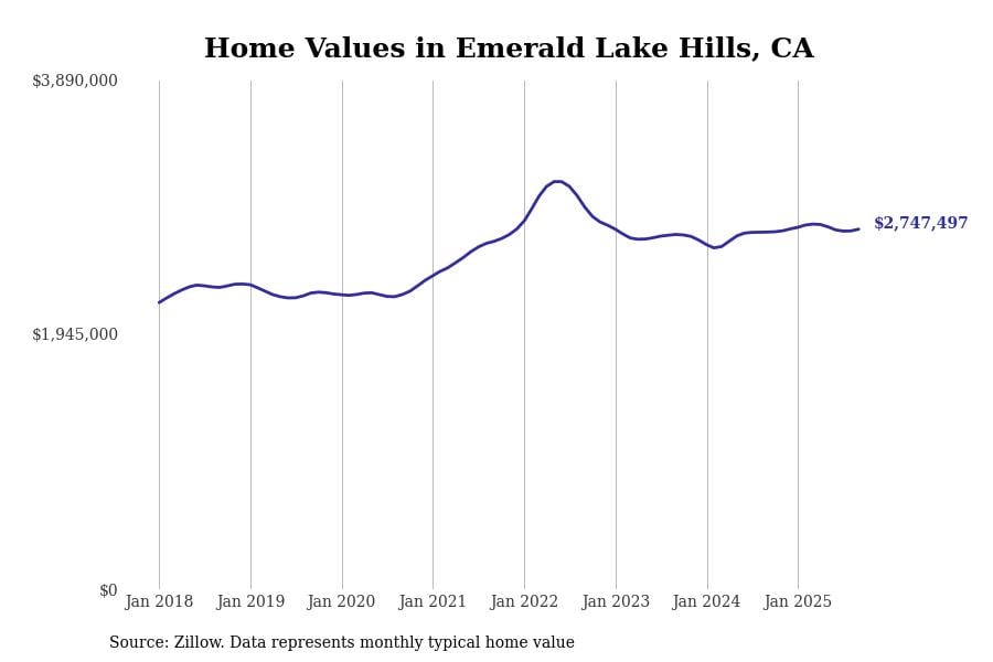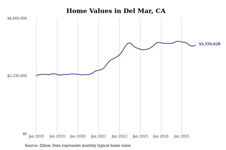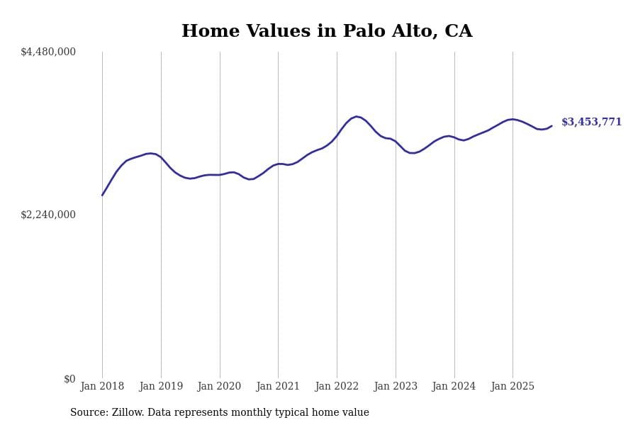 Stacker compiled a list of cities with the most expensive homes in California using data from Zillow. Cities are ranked by the Zillow Home Values Index for all homes as of September 2025. The charts in this story were created automatically using Matplotlib.