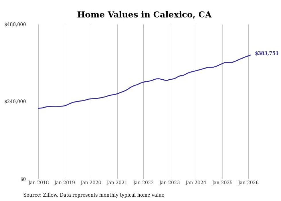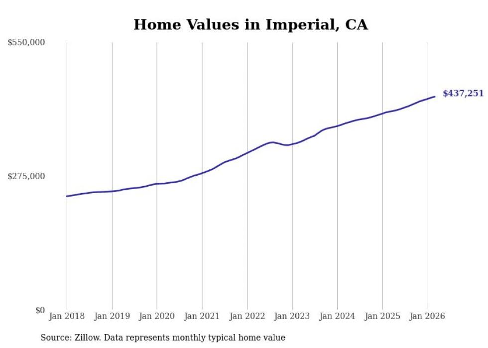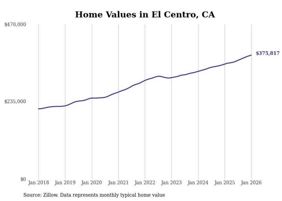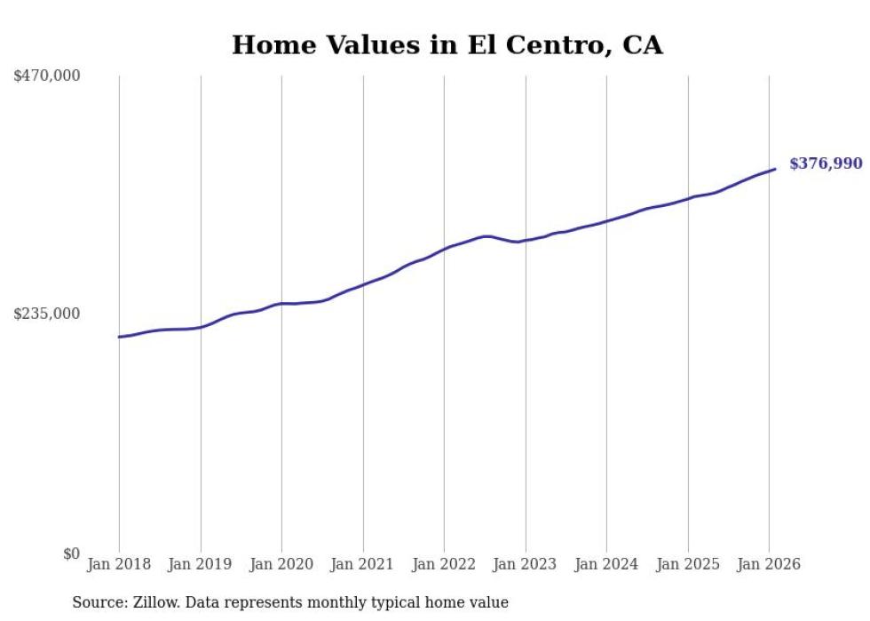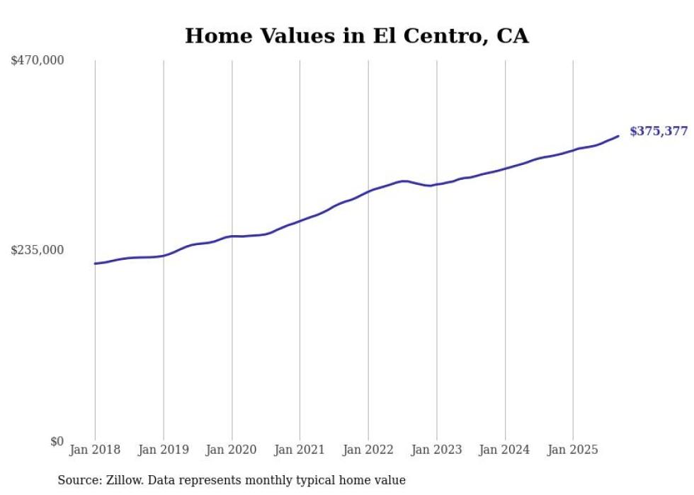 Stacker compiled a list of cities with the most expensive homes in the El Centro, CA metro area using data from Zillow. Charts show the monthly typical home value since January 2018.