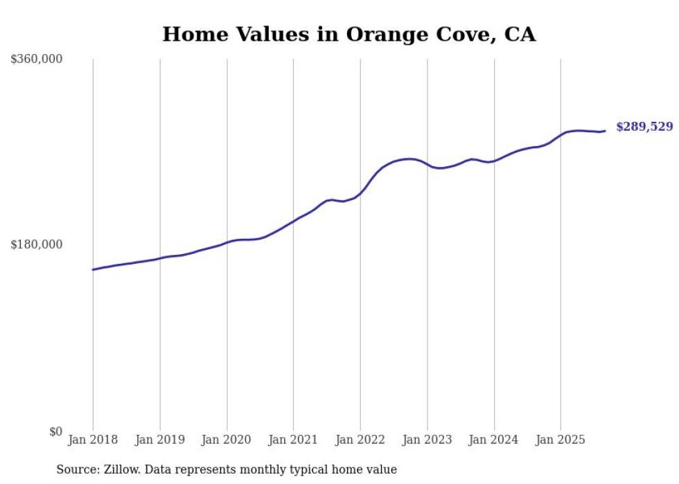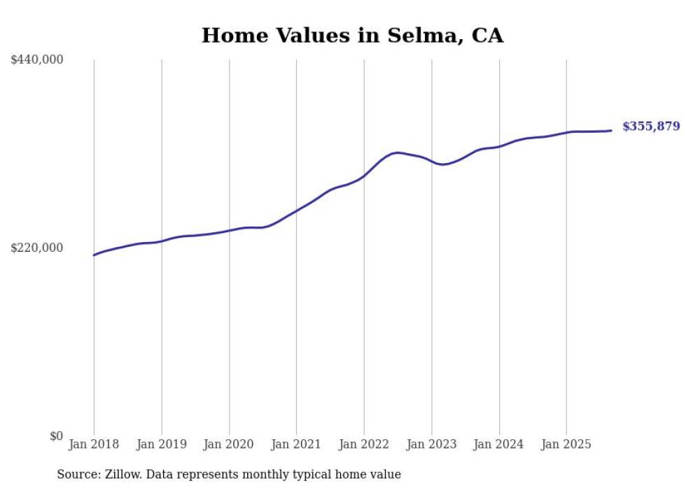 Stacker compiled a list of cities with the most expensive homes in the Fresno metro area using data from Zillow. Charts show the monthly typical home value since January 2018. All 27 cities and towns with data available were included in the list.