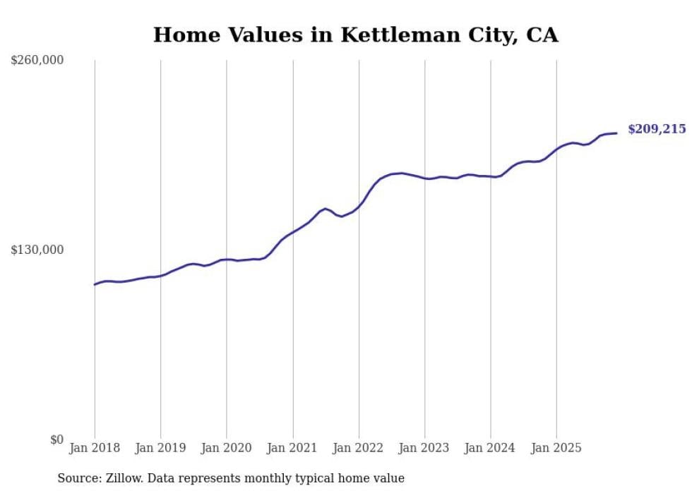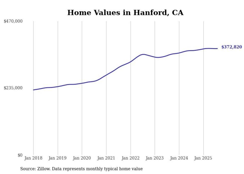 Stacker compiled a list of cities with the most expensive homes in the Hanford metro area using data from Zillow. Charts show the monthly typical home value since January 2018. All 7 cities and towns with data available were included in the list.