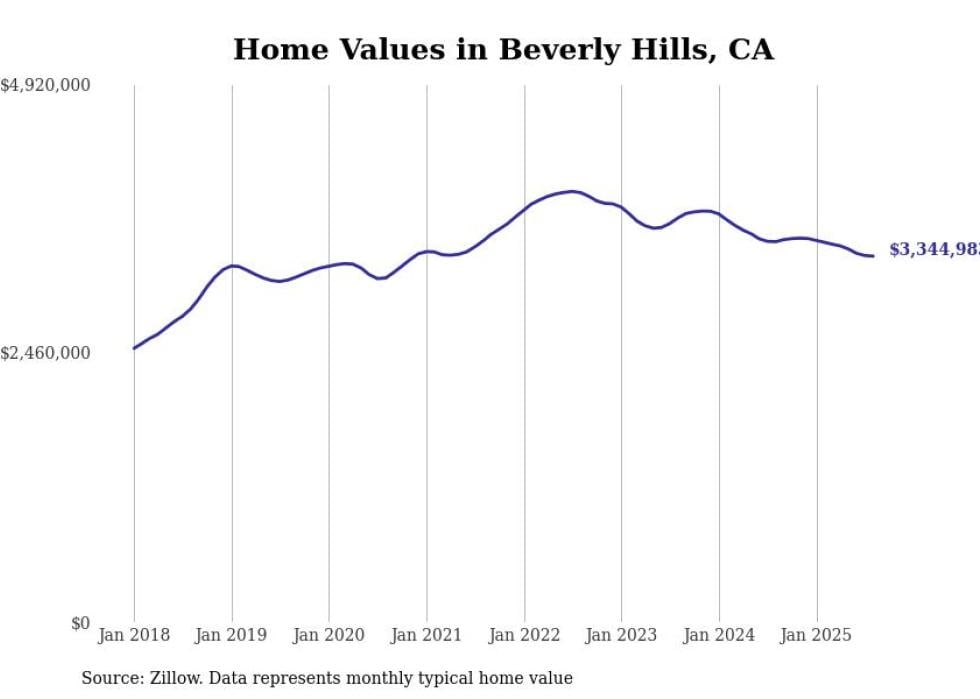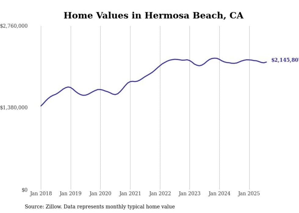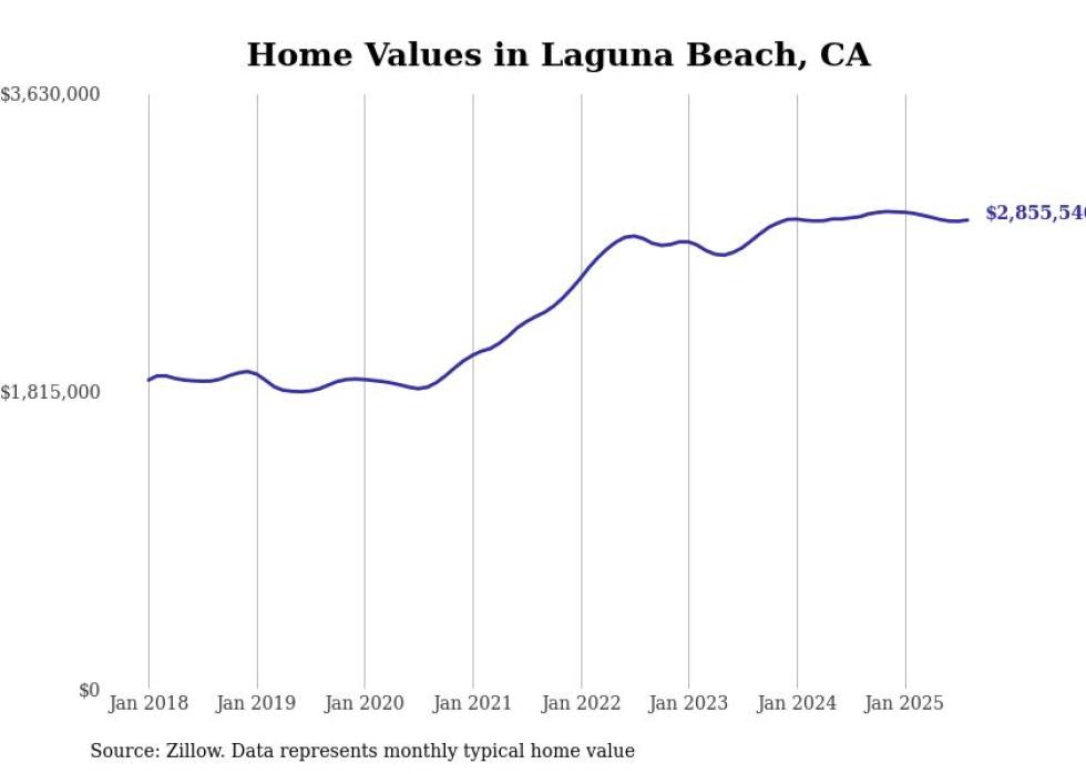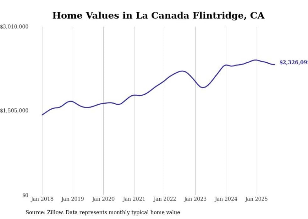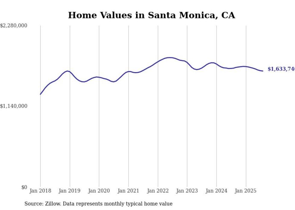 Stacker compiled a list of cities with the most expensive homes in the Los Angeles metro area using data from Zillow. Charts show the monthly typical home value since January 2018. Data was available for 152 cities and towns.