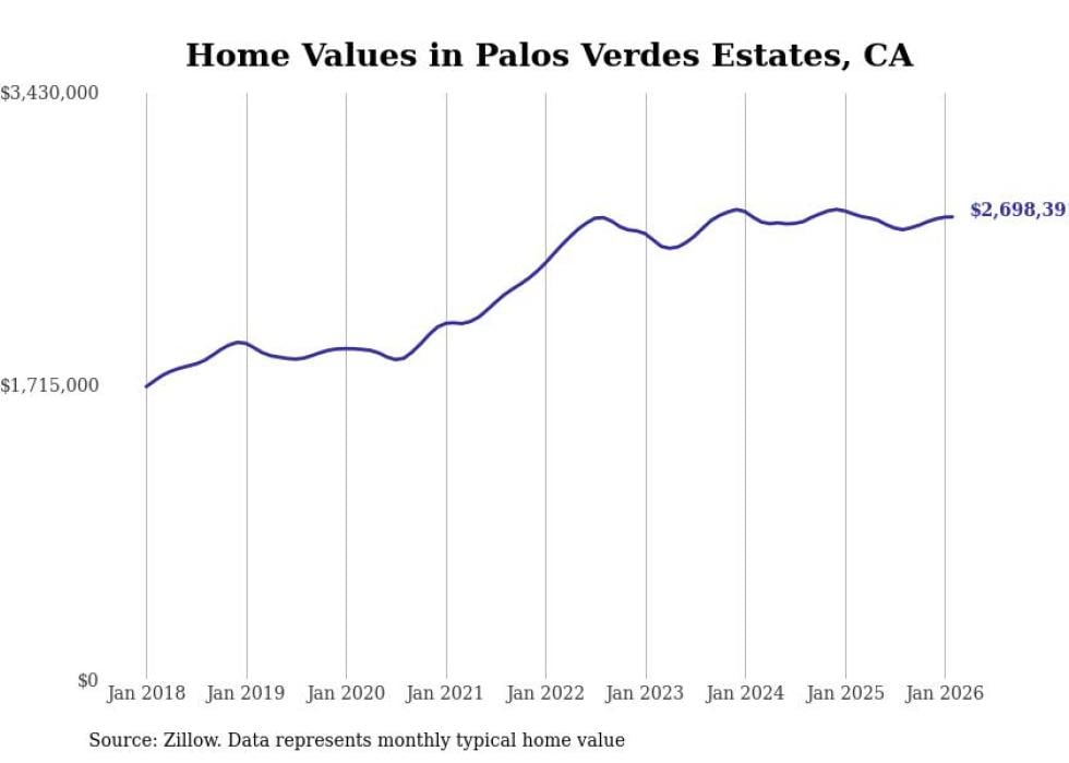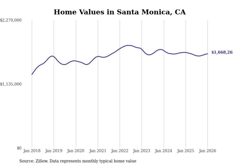 Stacker compiled a list of cities with the most expensive homes in the Los Angeles metro area using data from Zillow. Charts show the monthly typical home value since January 2018. Data was available for 151 cities and towns.