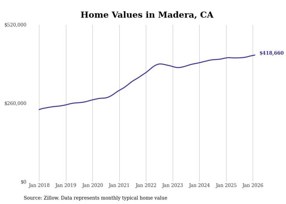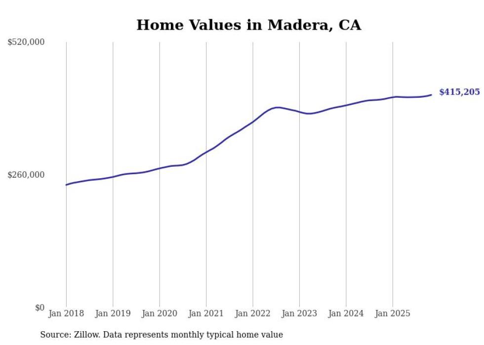 Stacker compiled a list of cities with the most expensive homes in the Madera, CA metro area using data from Zillow. Charts show the monthly typical home value since January 2018.