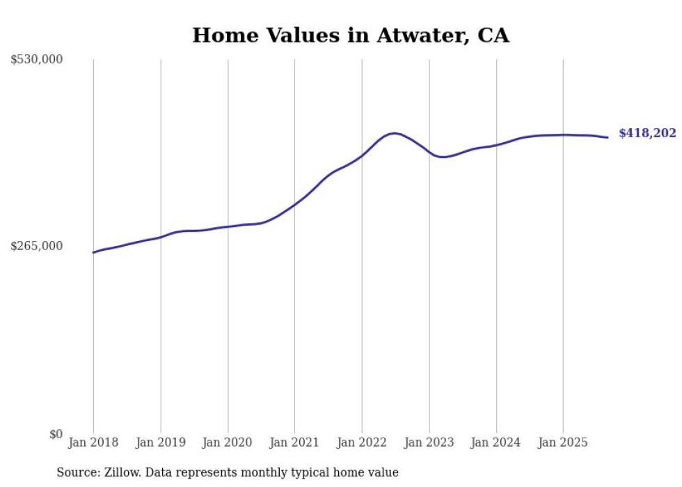 Stacker compiled a list of cities with the most expensive homes in the Merced, CA metro area using data from Zillow. Charts show the monthly typical home value since January 2018.
