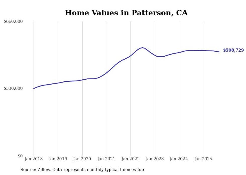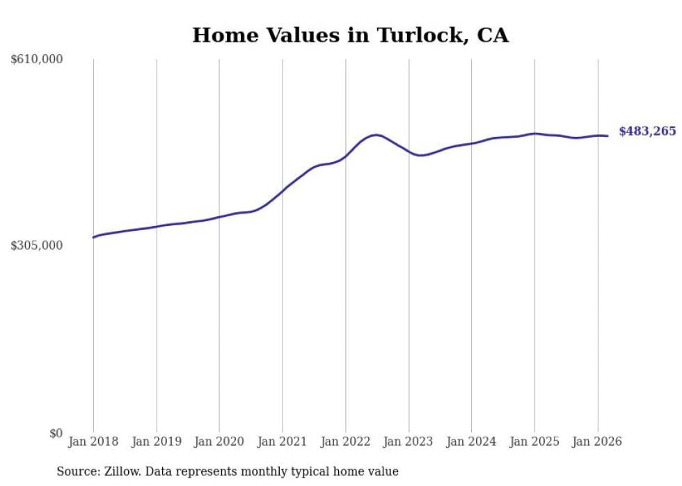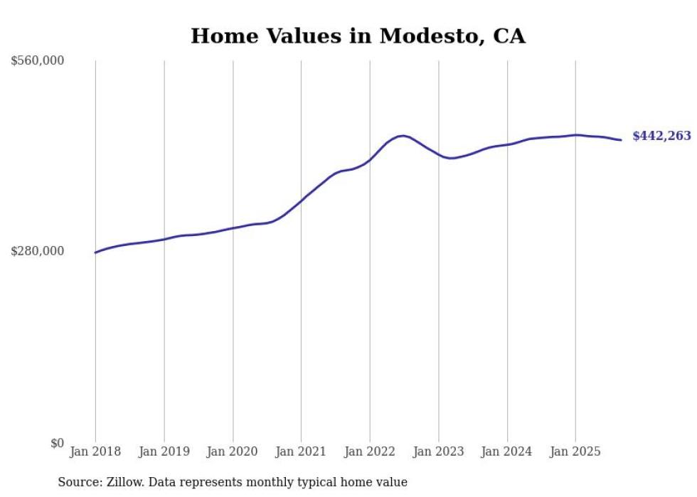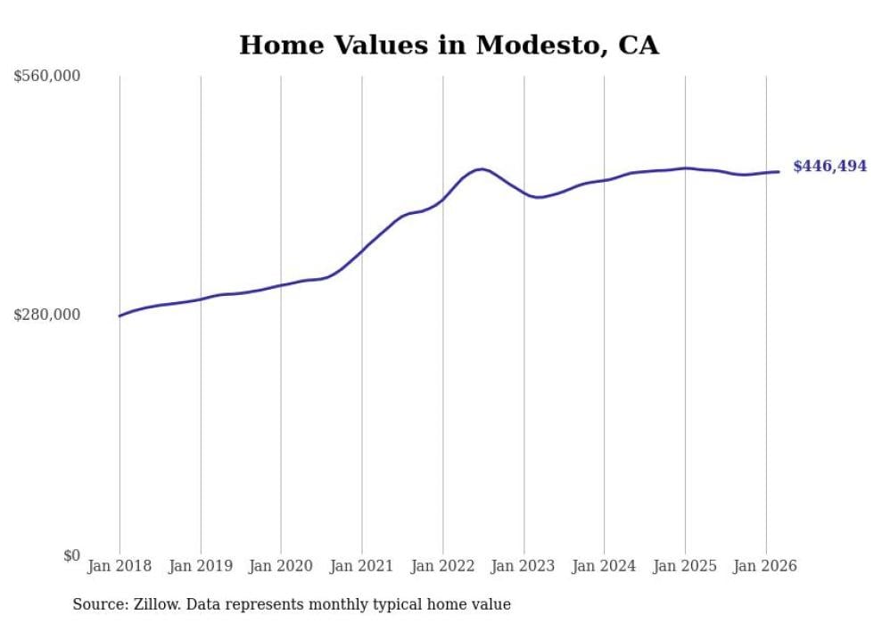 Stacker compiled a list of cities with the most expensive homes in the Modesto metro area using data from Zillow. Charts show the monthly typical home value since January 2018. All 16 cities and towns with data available were included in the list.