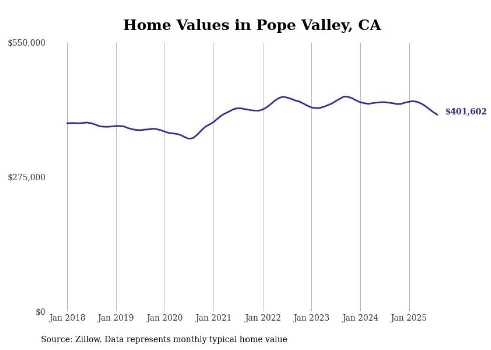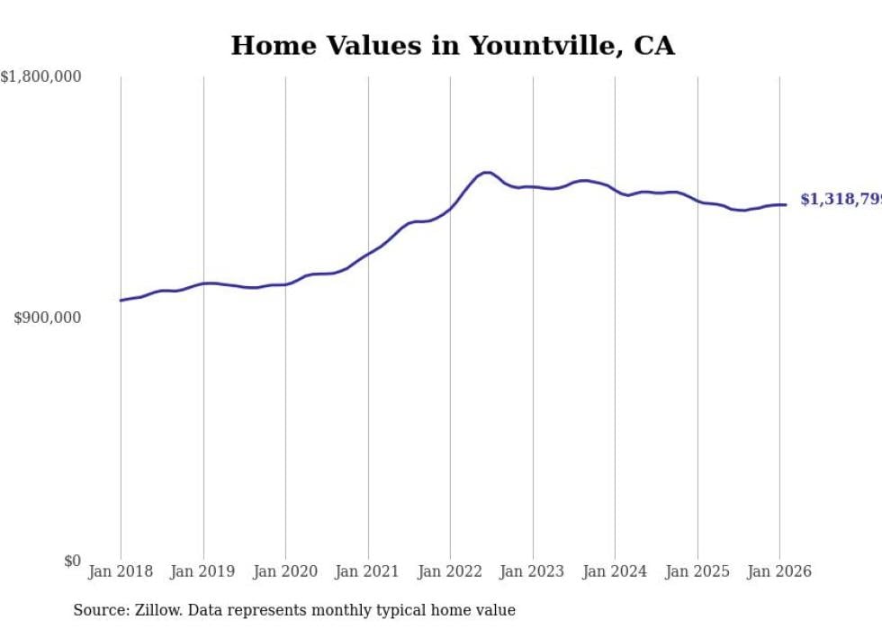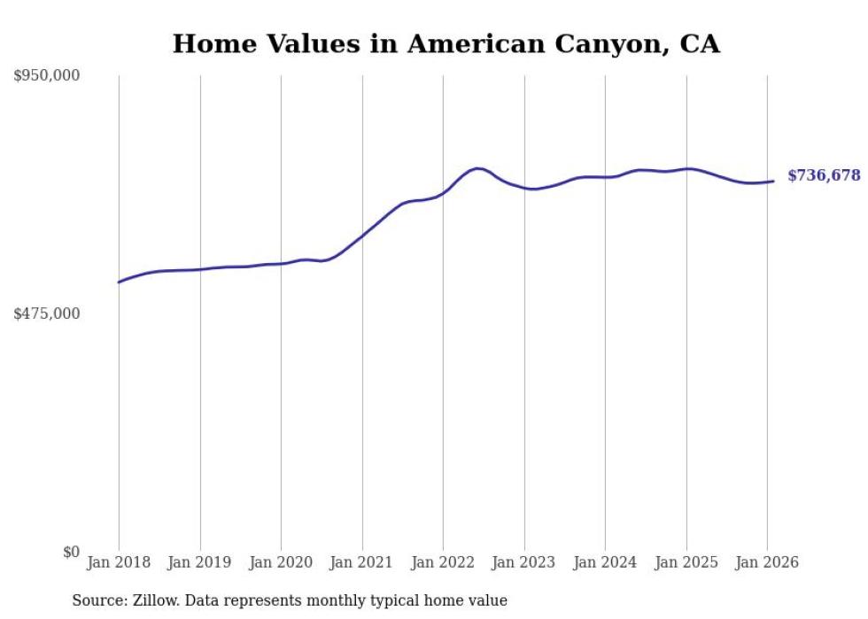 Stacker compiled a list of cities with the most expensive homes in the Napa, CA metro area using data from Zillow. Charts show the monthly typical home value since January 2018.
