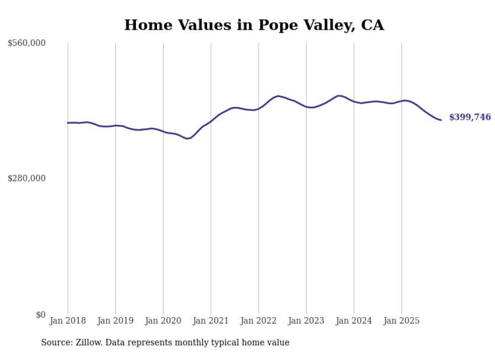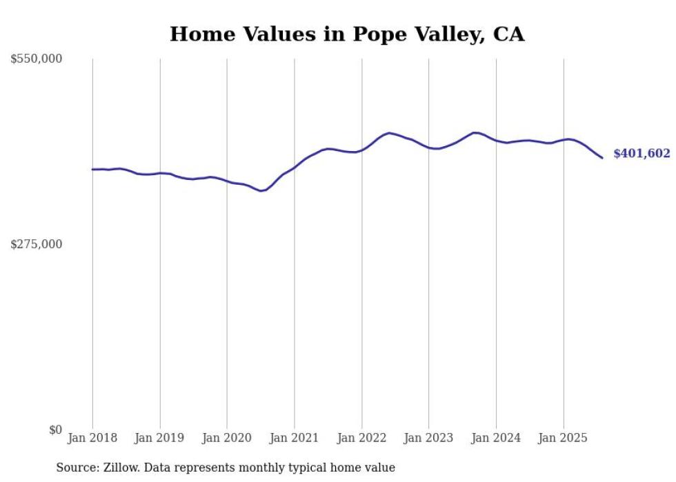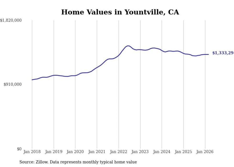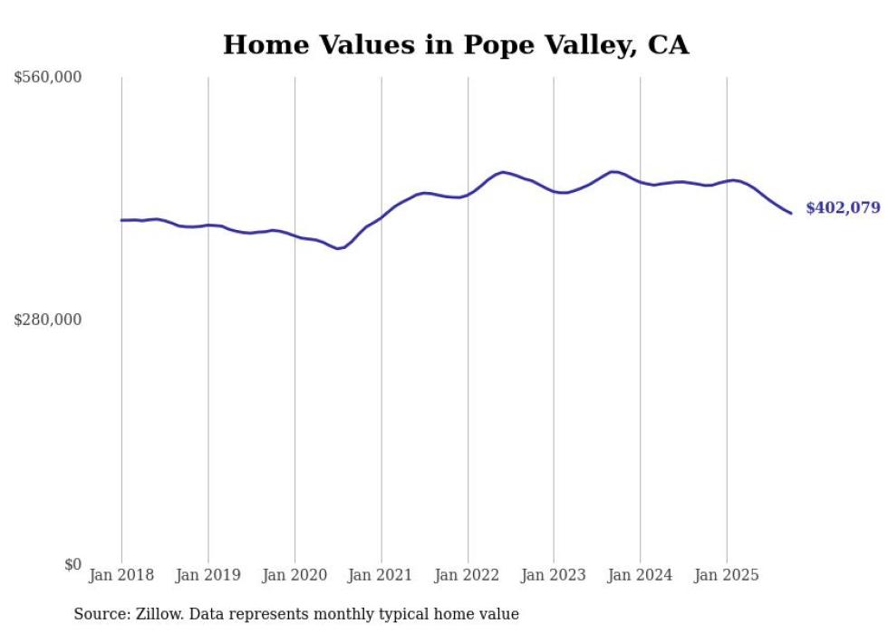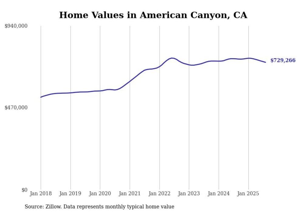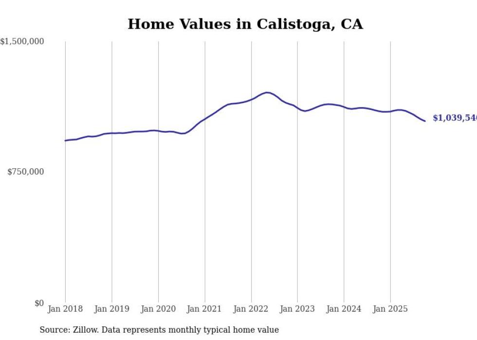 Stacker compiled a list of cities with the most expensive homes in the Napa metro area using data from Zillow. Charts show the monthly typical home value since January 2018. All 7 cities and towns with data available were included in the list.