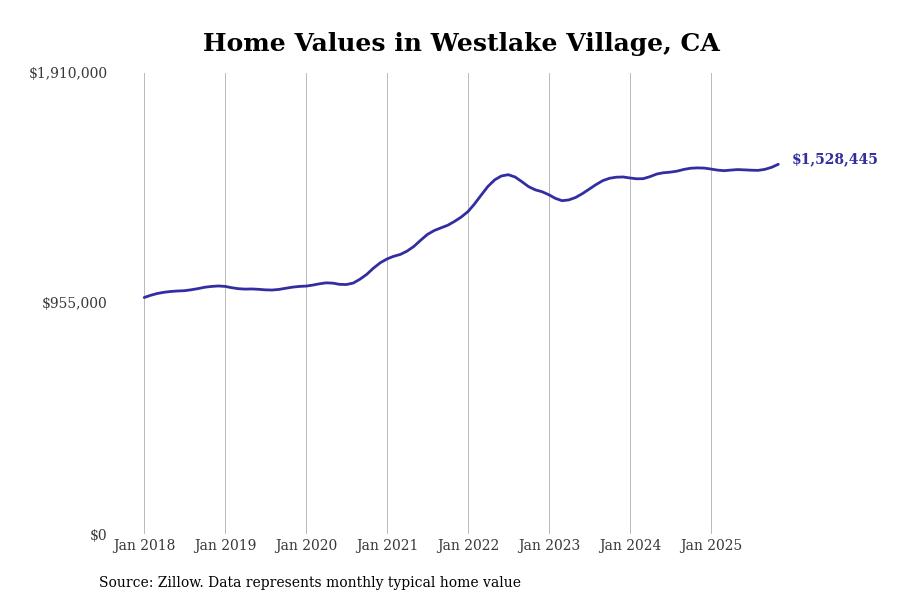 - Typical home value: $1,528,445 (#2 most expensive city in metro)