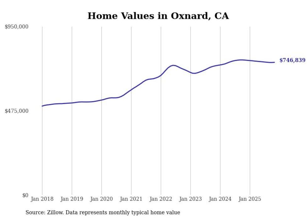 Stacker compiled a list of cities with the most expensive homes in the Oxnard metro area using data from Zillow. Charts show the monthly typical home value since January 2018. All 17 cities and towns with data available were included in the list.