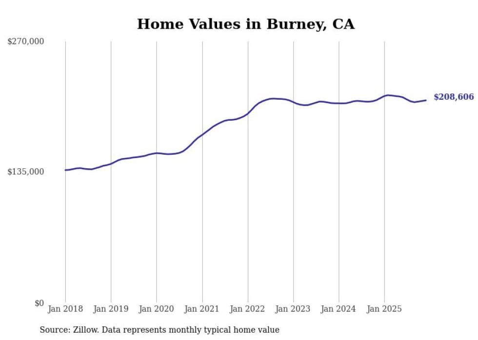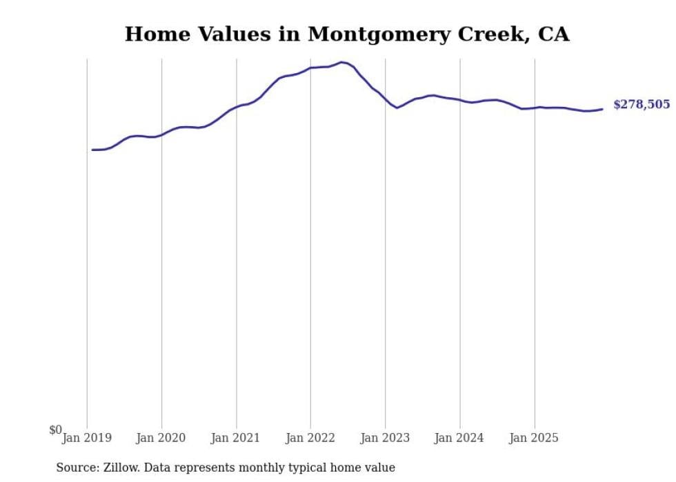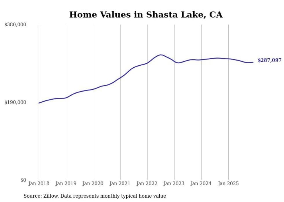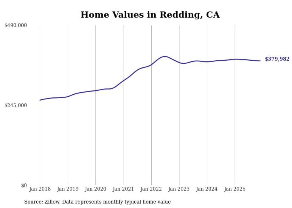 Stacker compiled a list of cities with the most expensive homes in the Redding metro area using data from Zillow. Charts show the monthly typical home value since January 2018. All 17 cities and towns with data available were included in the list.