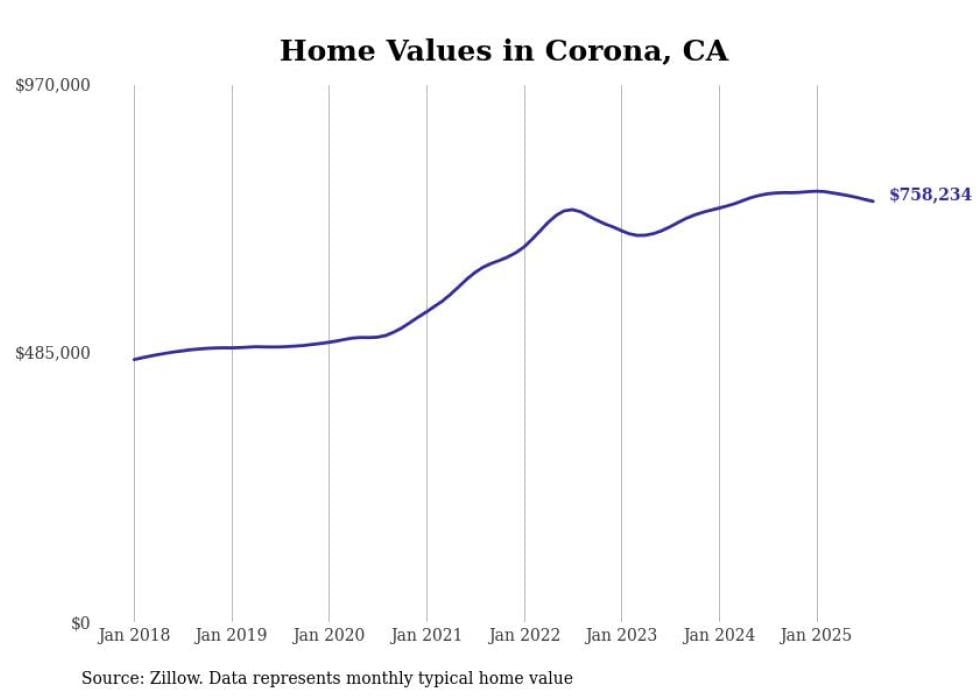 Stacker compiled a list of cities with the most expensive homes in the Riverside metro area using data from Zillow. Charts show the monthly typical home value since January 2018. Data was available for 92 cities and towns.