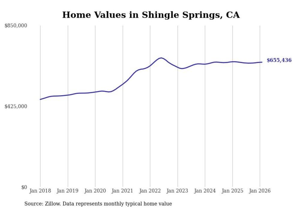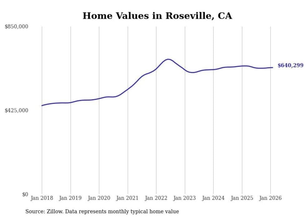 Stacker compiled a list of cities with the most expensive homes in the Sacramento metro area using data from Zillow. Charts show the monthly typical home value since January 2018. Data was available for 73 cities and towns.