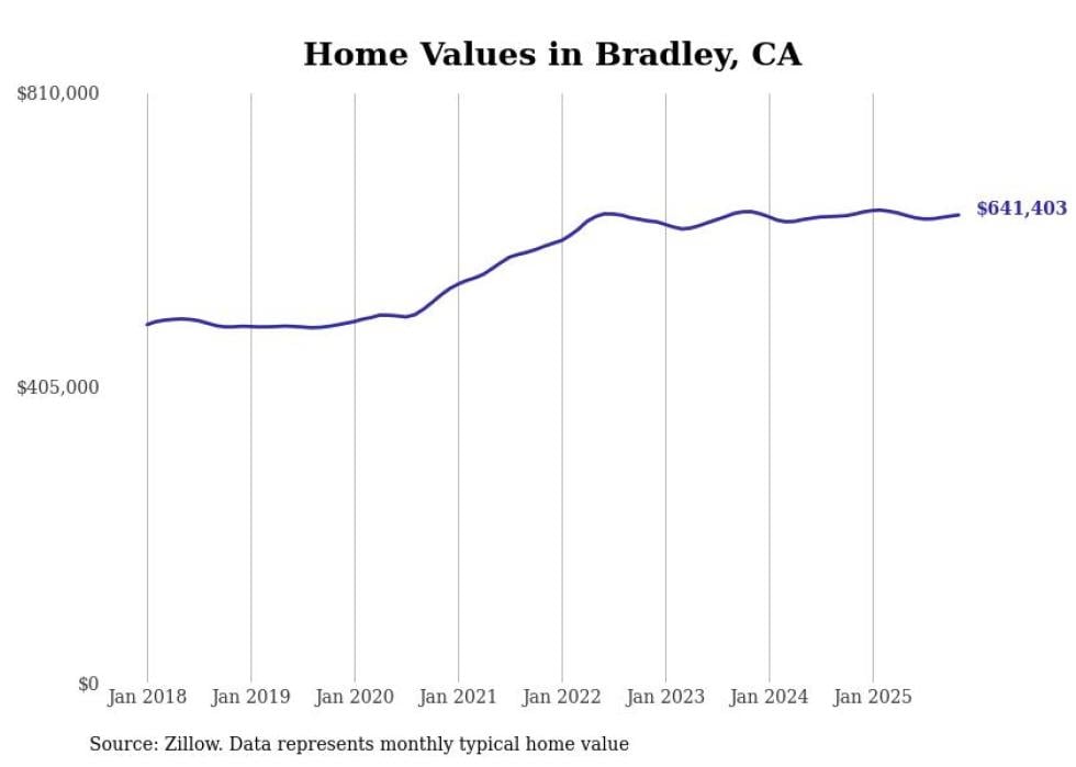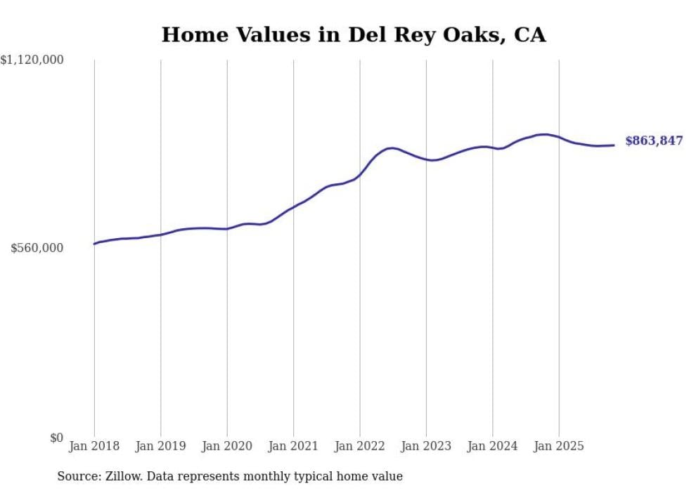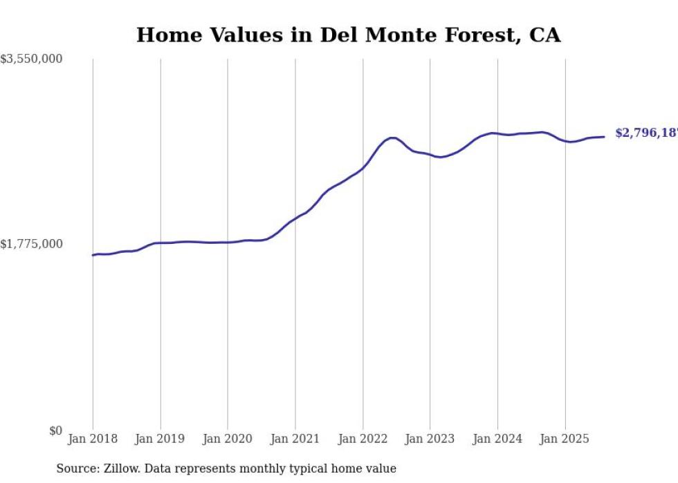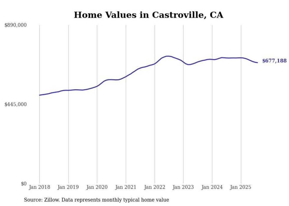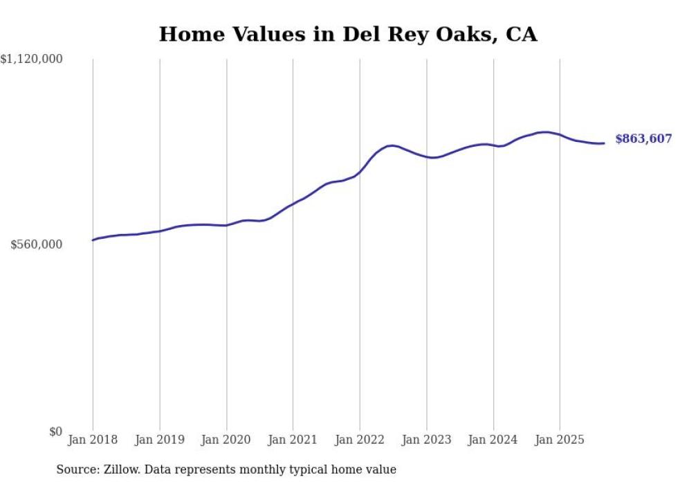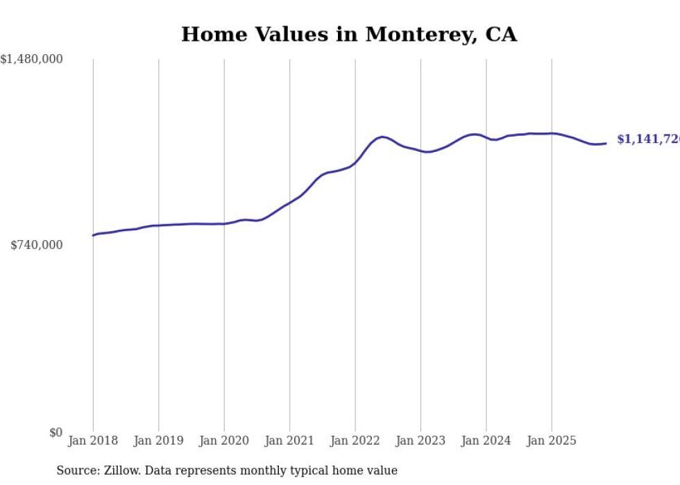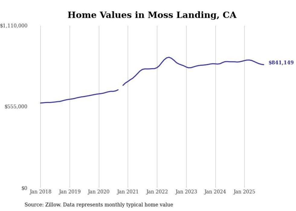 Stacker compiled a list of cities with the most expensive homes in the Salinas, CA metro area using data from Zillow. Charts show the monthly typical home value since January 2018.