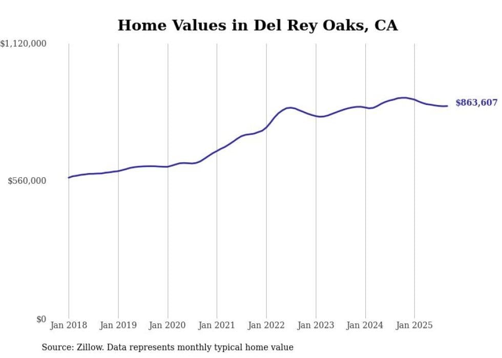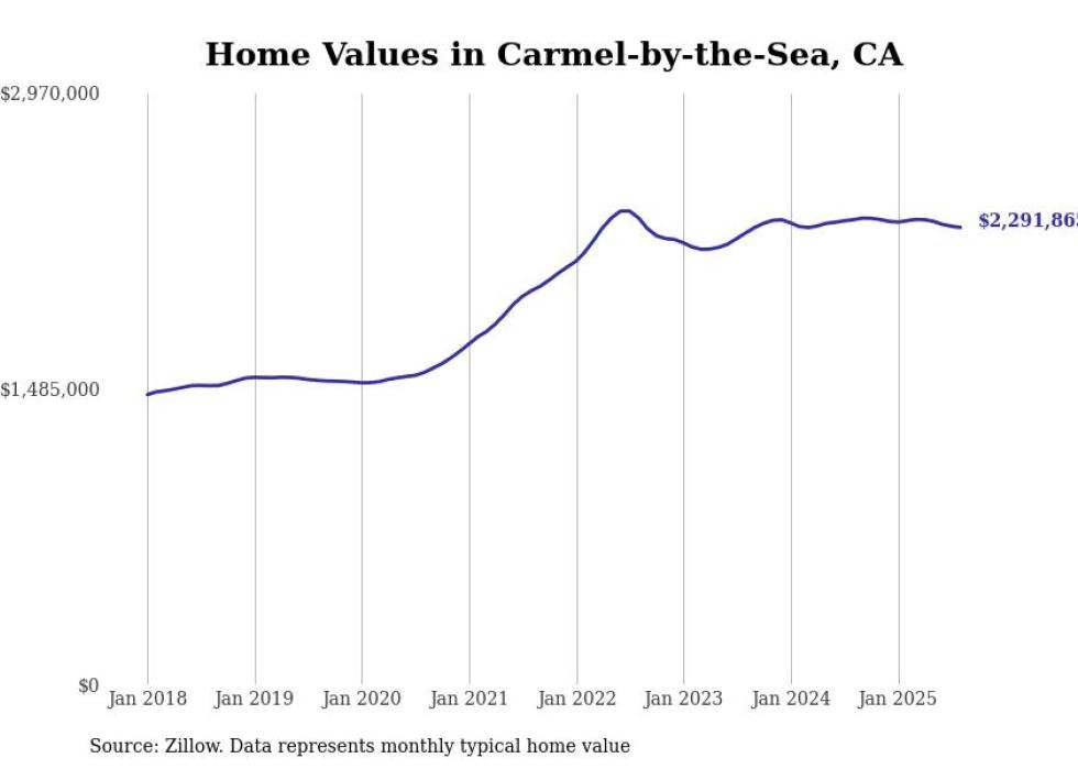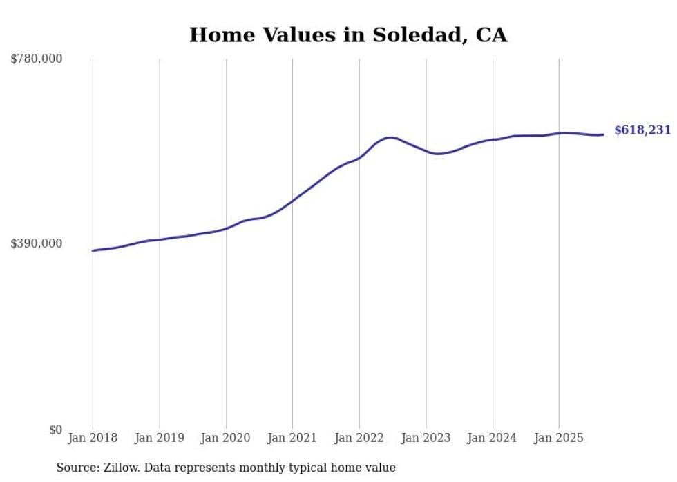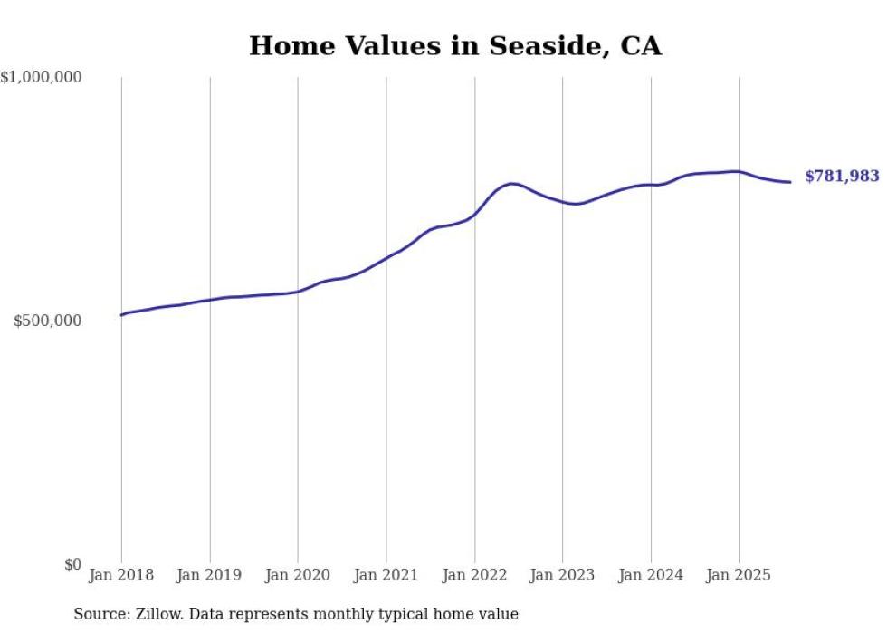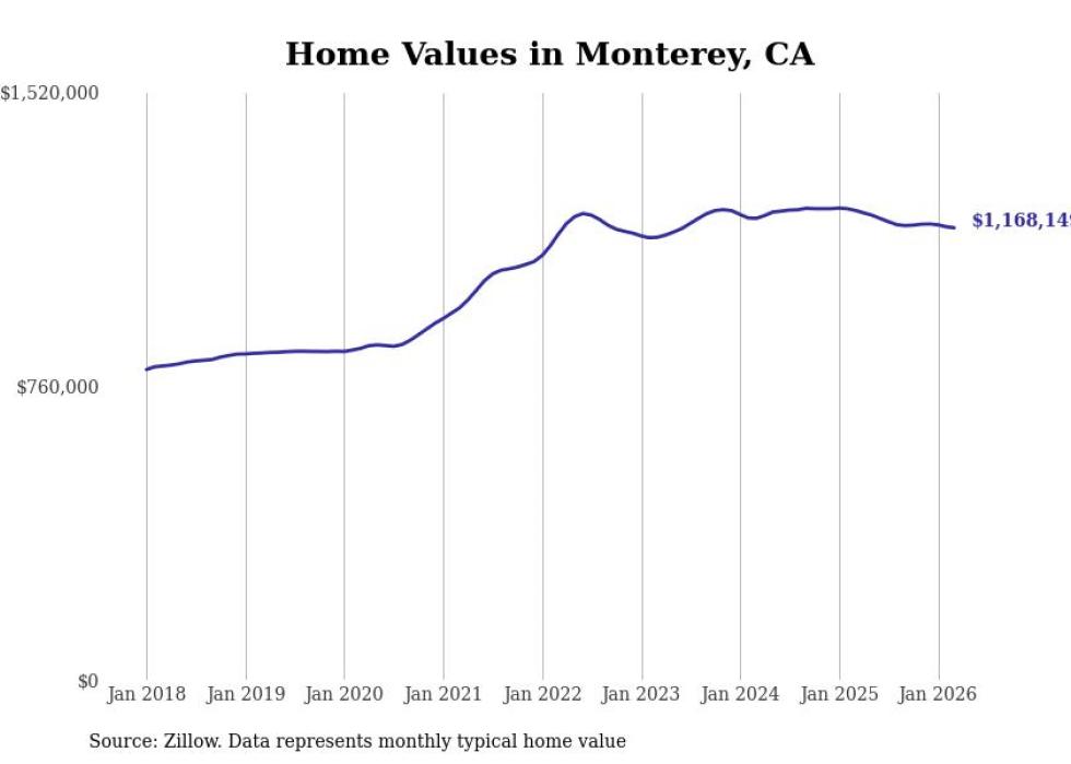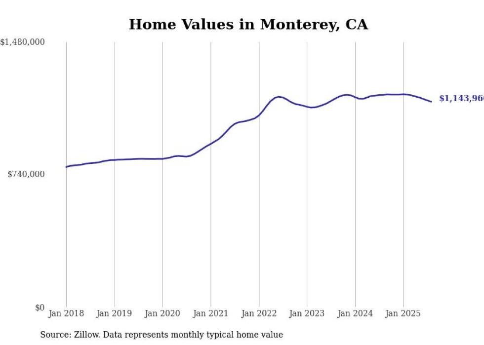 Stacker compiled a list of cities with the most expensive homes in the Salinas metro area using data from Zillow. Charts show the monthly typical home value since January 2018. All 20 cities and towns with data available were included in the list.