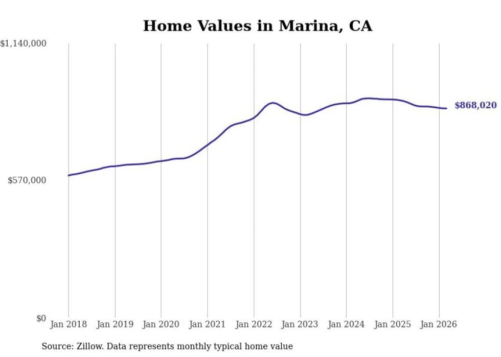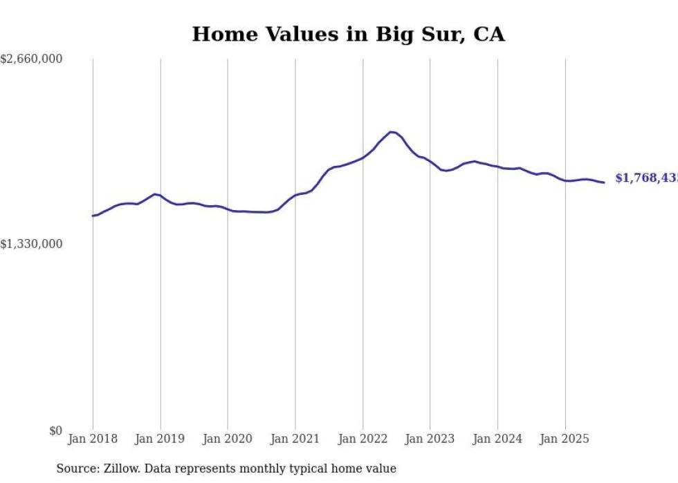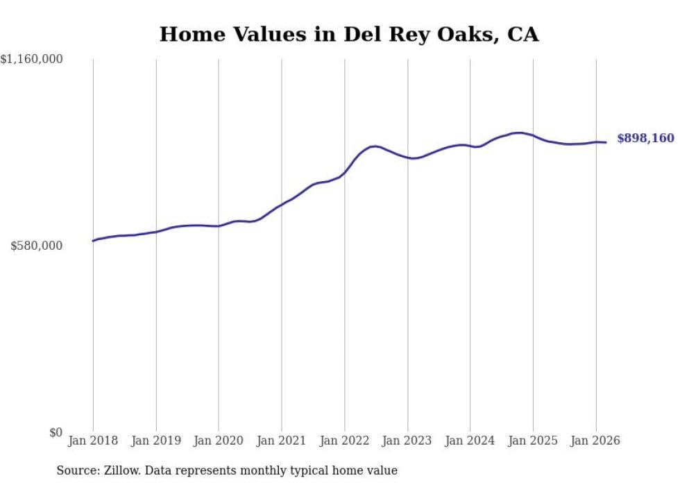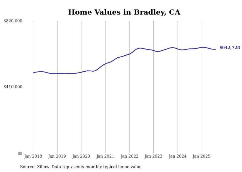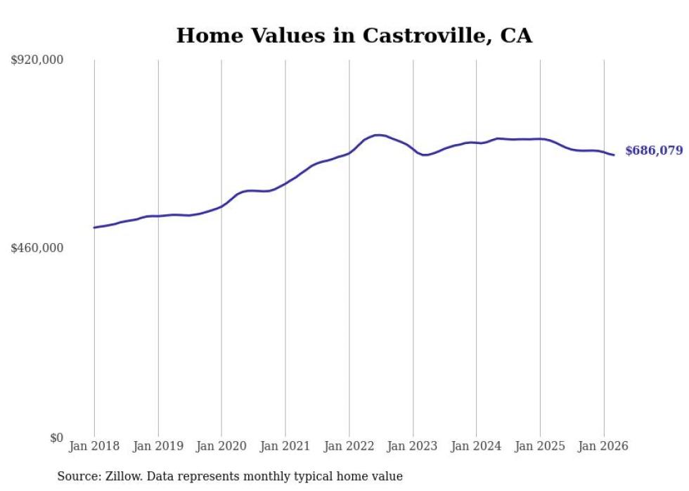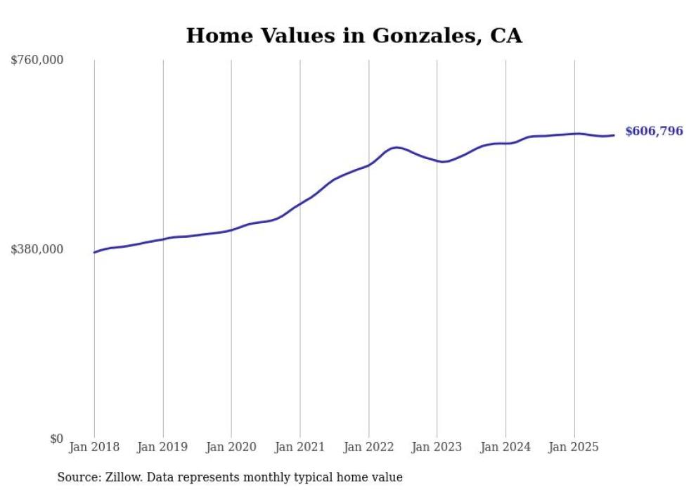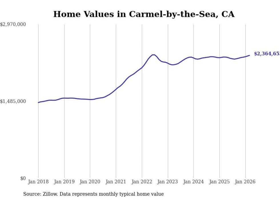 Stacker compiled a list of cities with the most expensive homes in the Salinas metro area using data from Zillow. Charts show the monthly typical home value since January 2018. All 20 cities and towns with data available were included in the list.