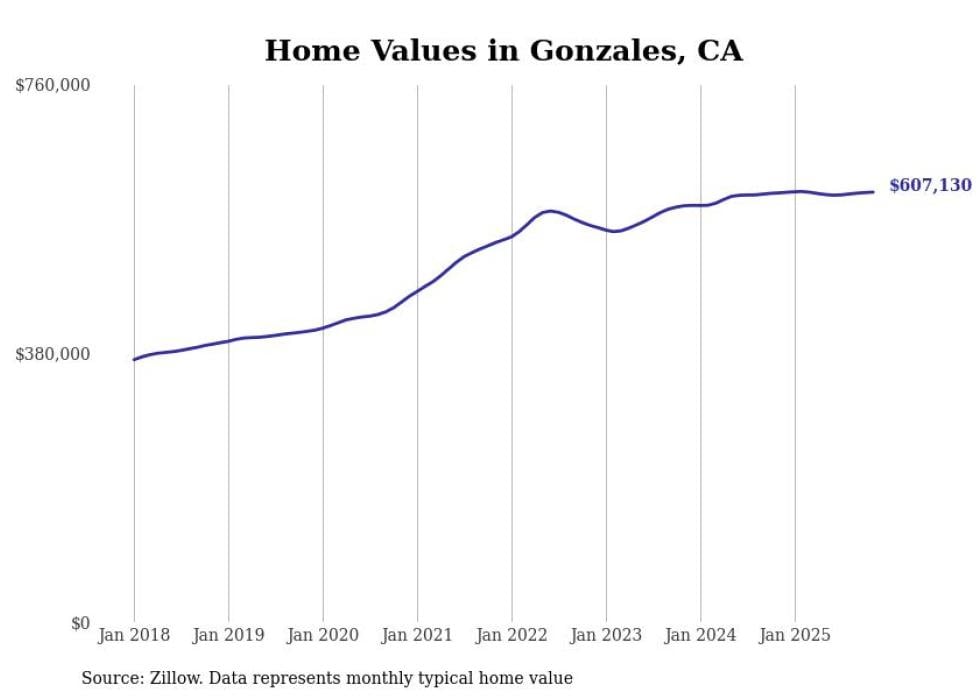 - Typical home value: $607,130