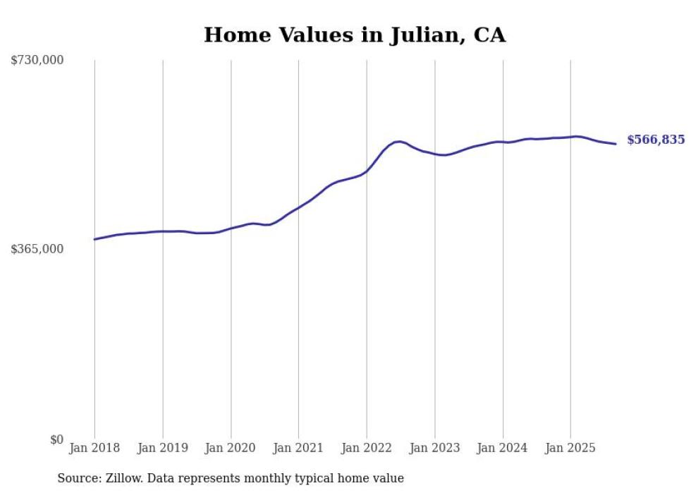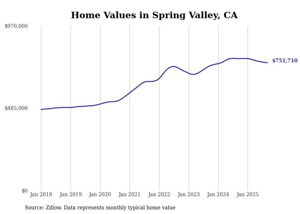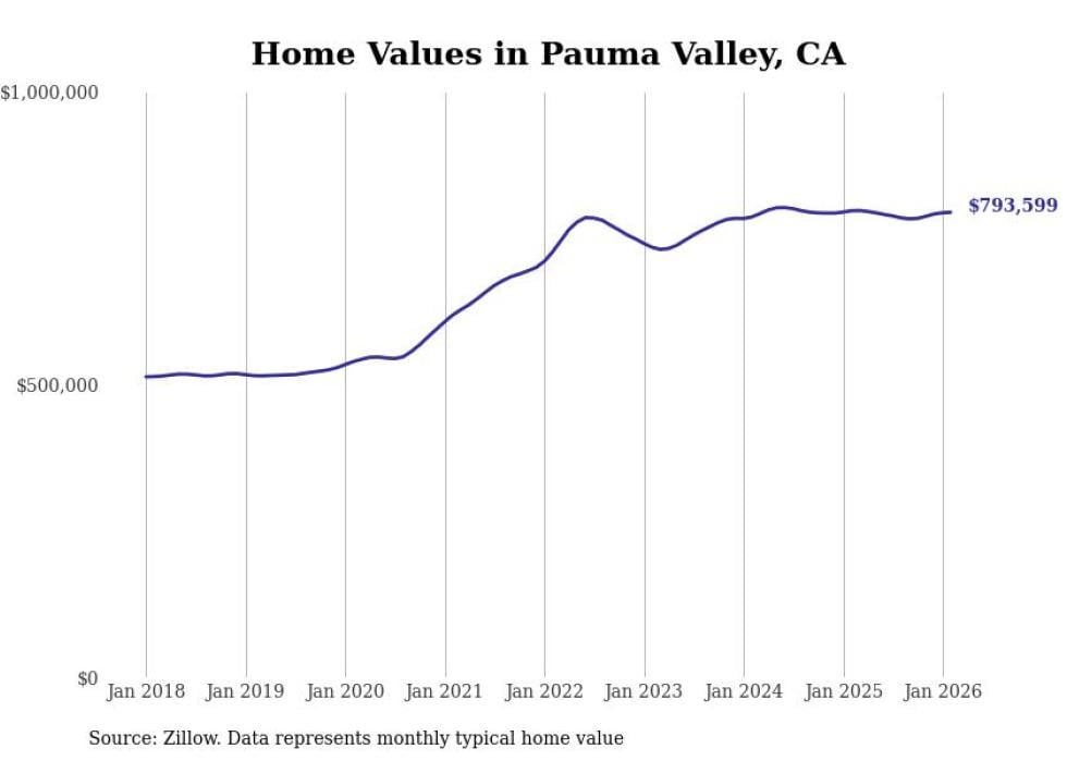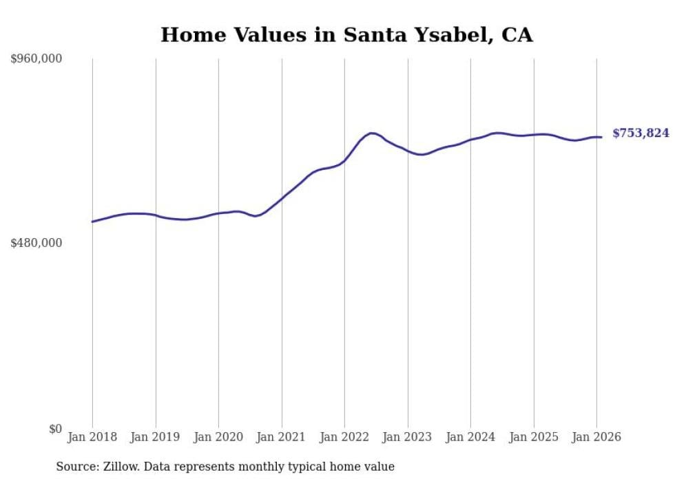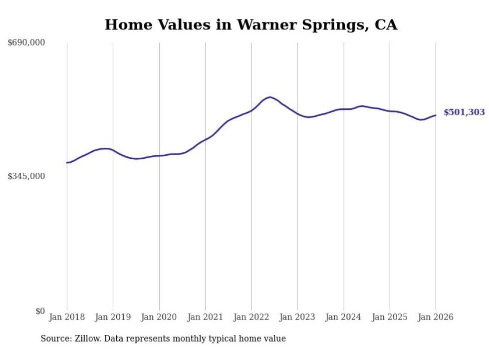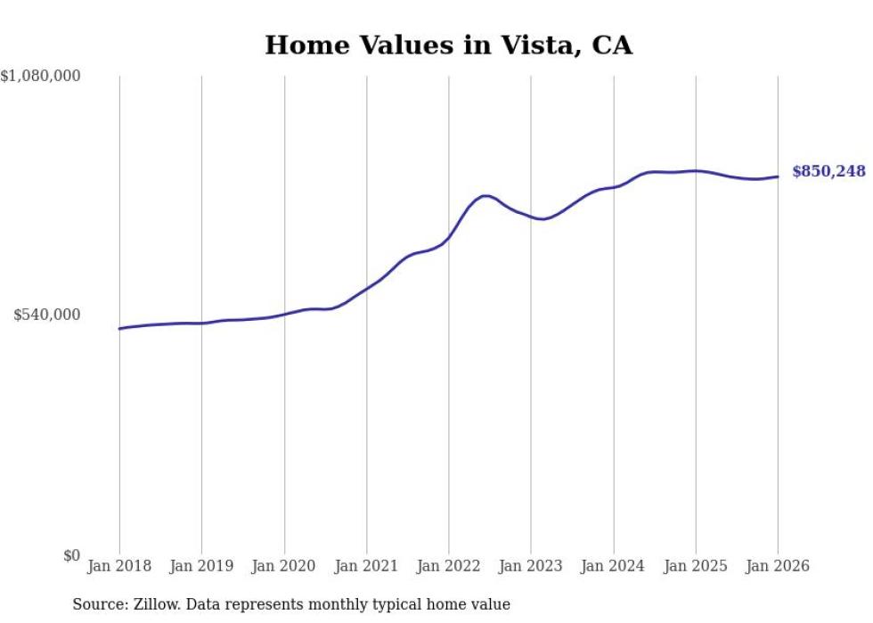 Stacker compiled a list of cities with the most expensive homes in the San Diego-Chula Vista-Carlsbad, CA metro area using data from Zillow. Charts show the monthly typical home value since January 2018.
