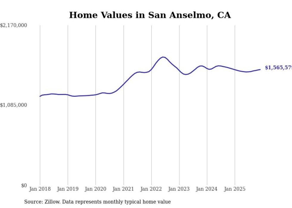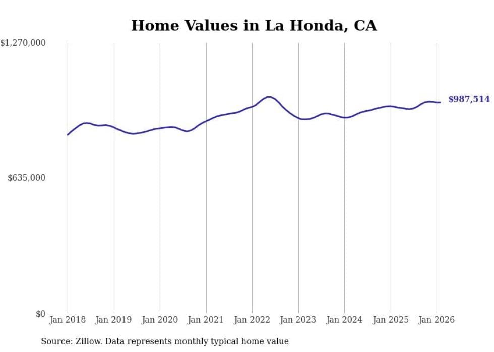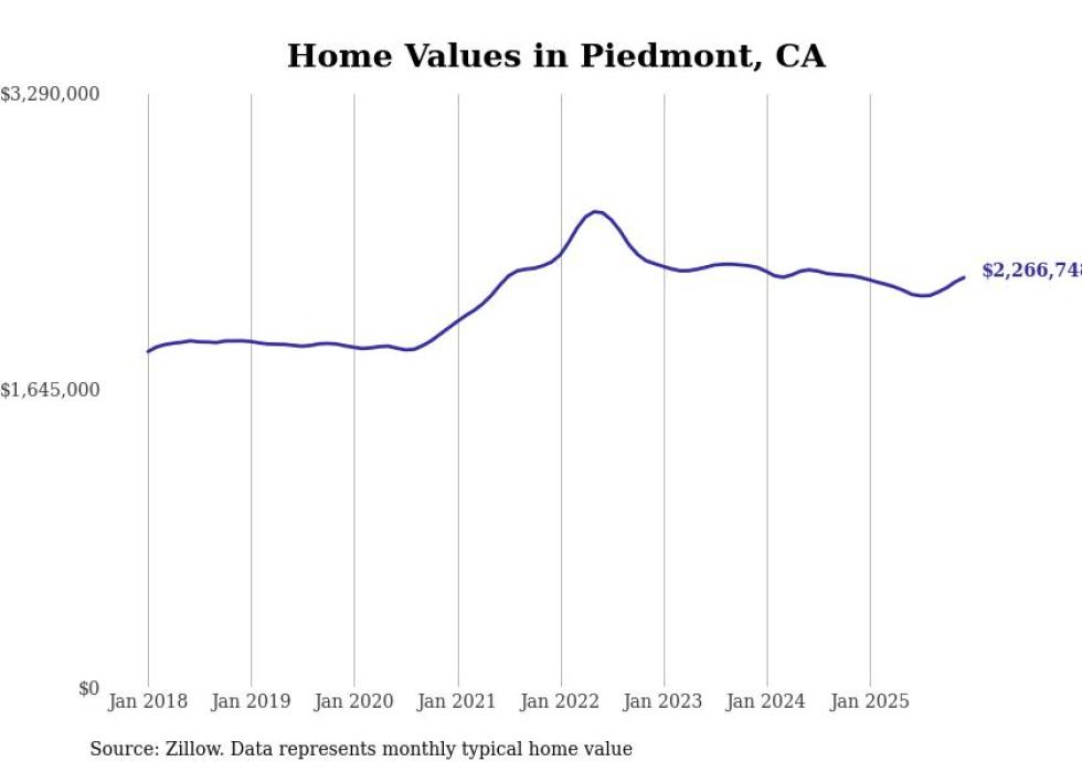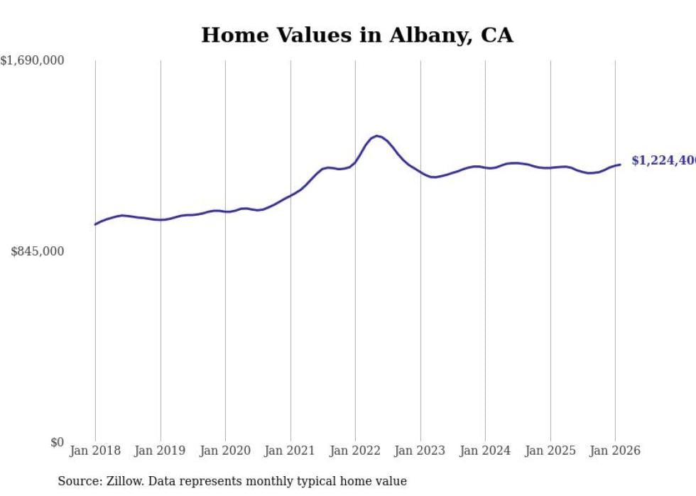 Stacker compiled a list of cities with the most expensive homes in the San Francisco-Oakland-Berkeley, CA metro area using data from Zillow. Charts show the monthly typical home value since January 2018.