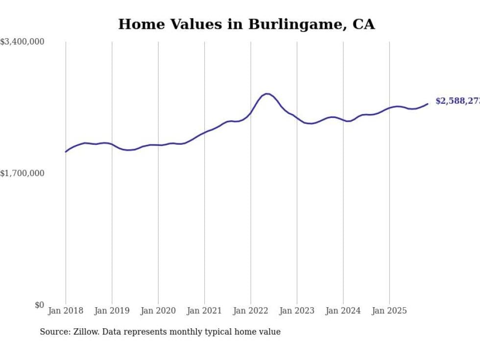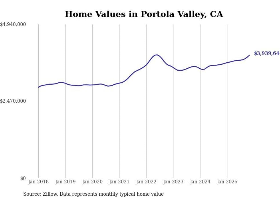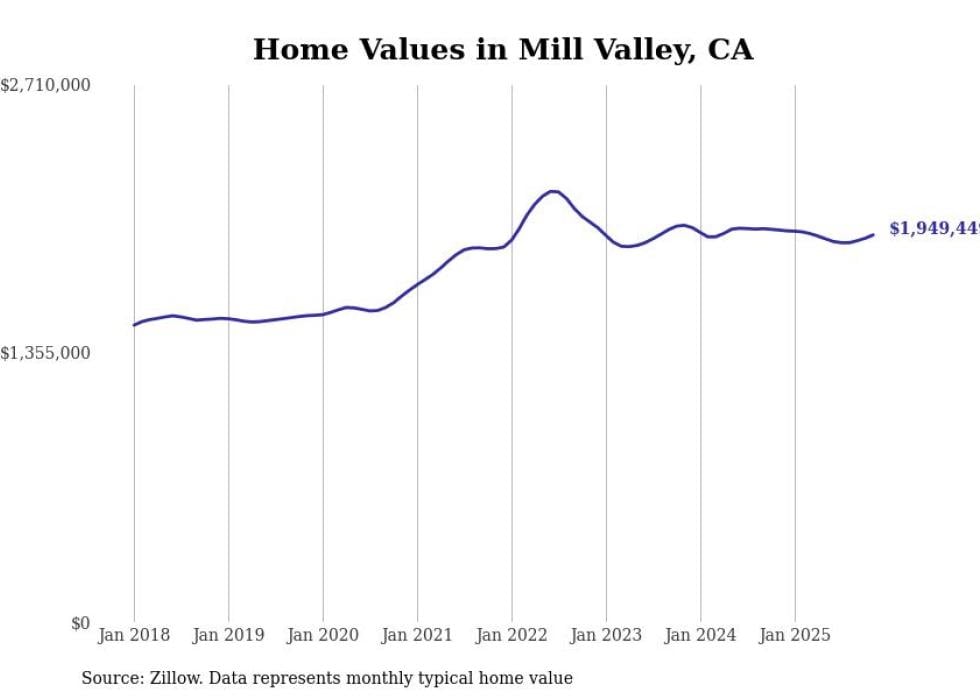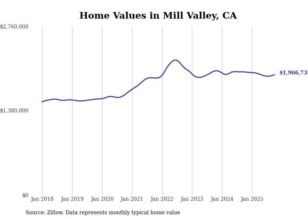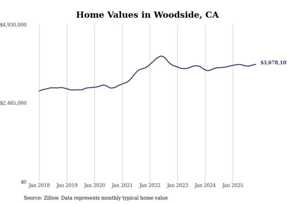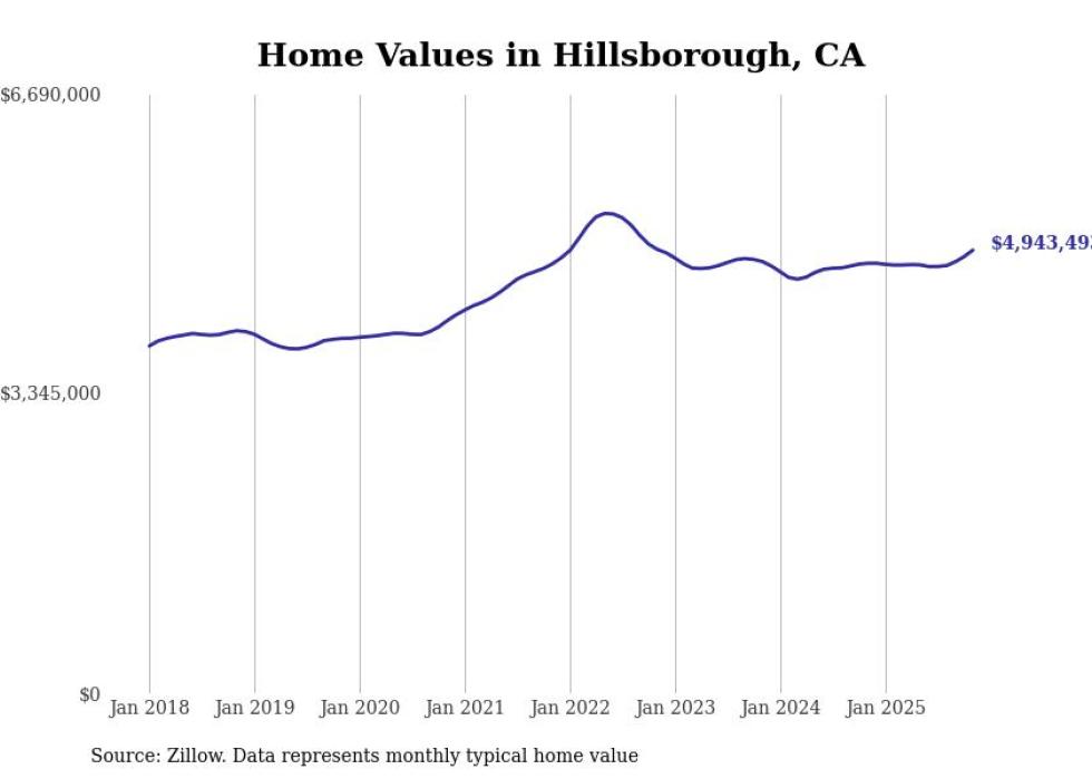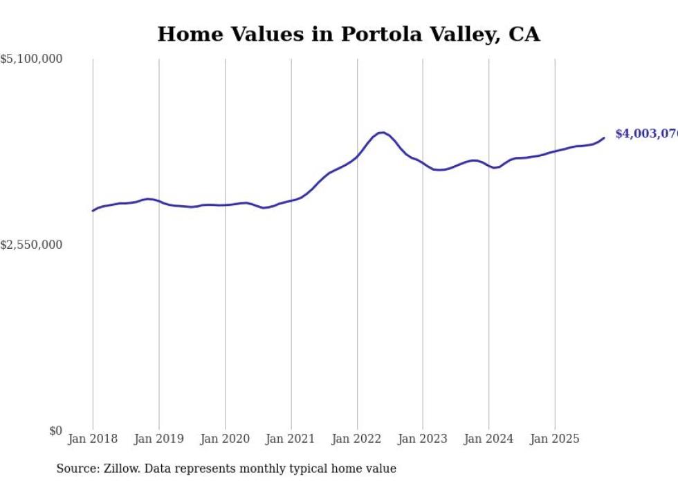 Stacker compiled a list of cities with the most expensive homes in the San Francisco metro area using data from Zillow. Charts show the monthly typical home value since January 2018. Data was available for 95 cities and towns.