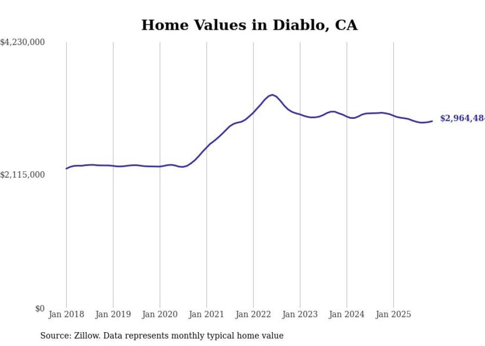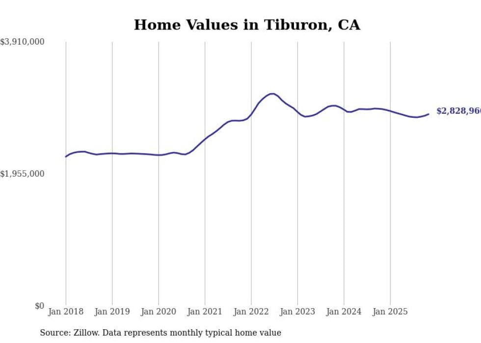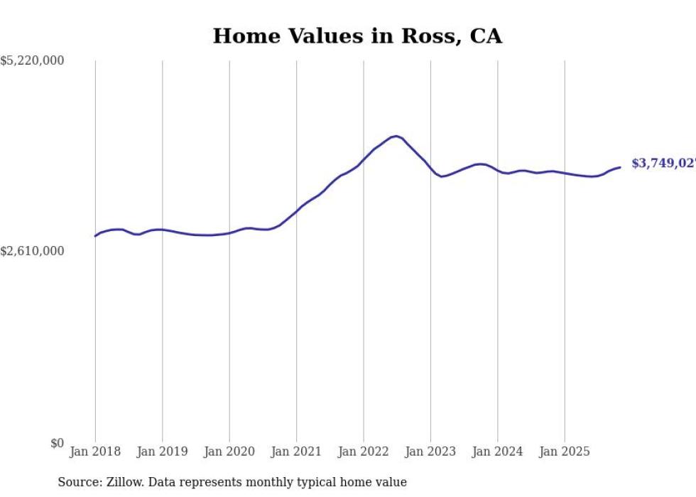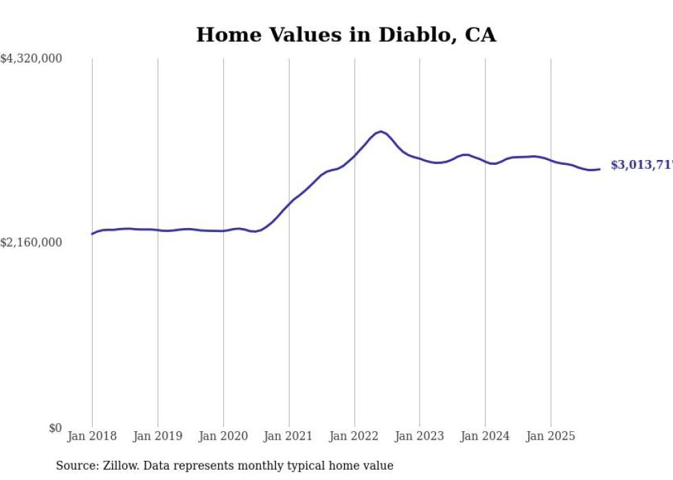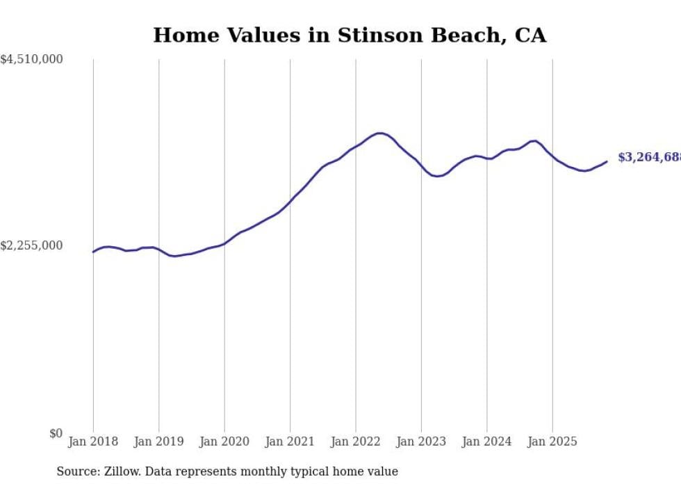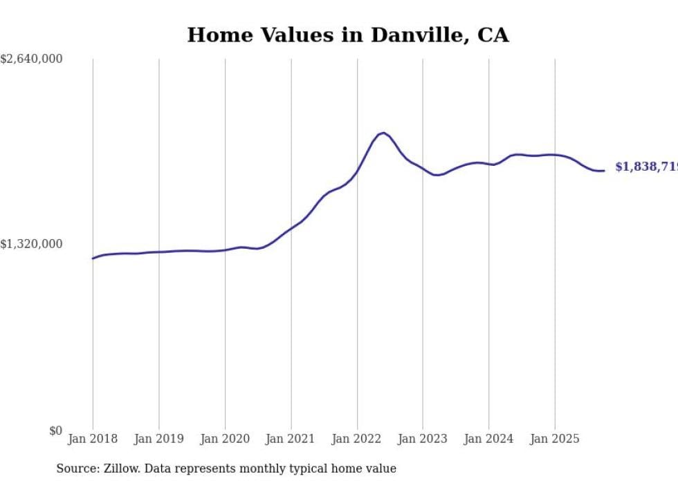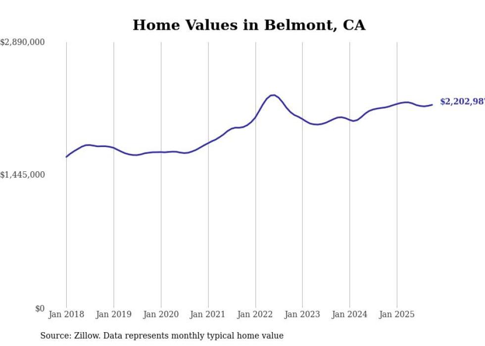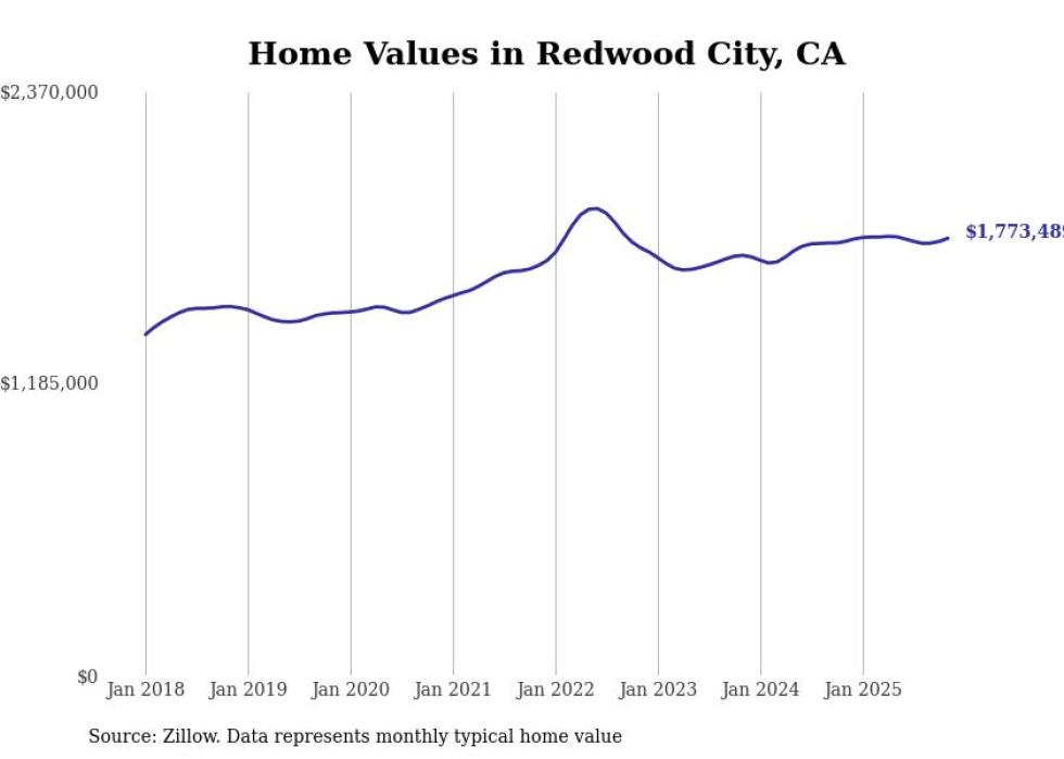 Stacker compiled a list of cities with the most expensive homes in the San Francisco metro area using data from Zillow. Charts show the monthly typical home value since January 2018. Data was available for 95 cities and towns.