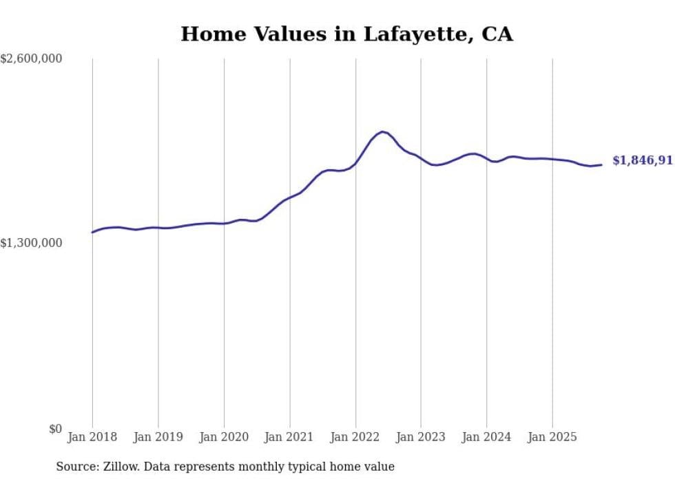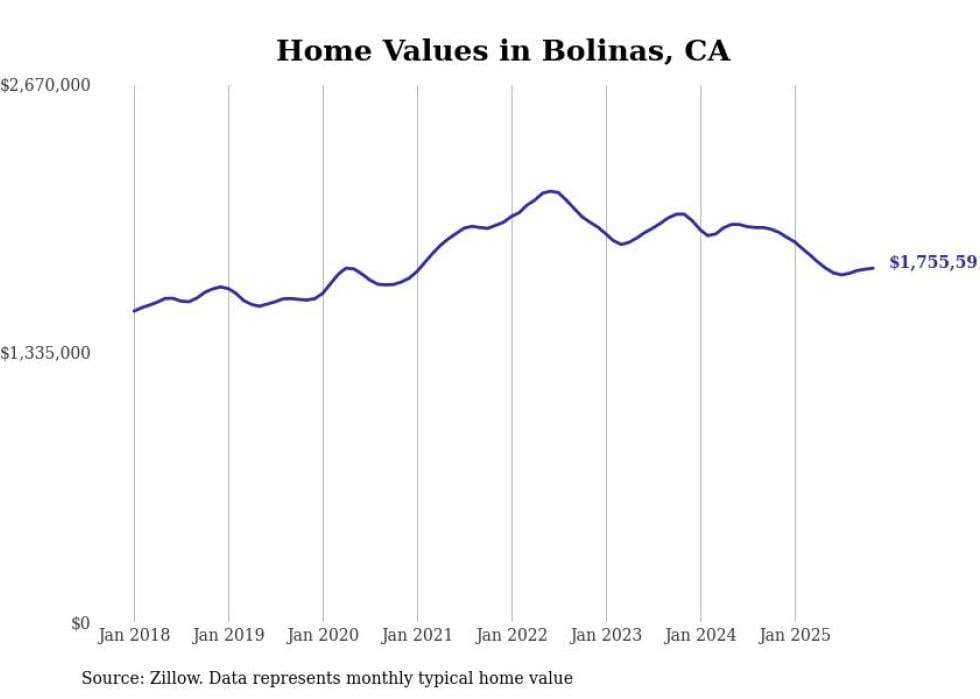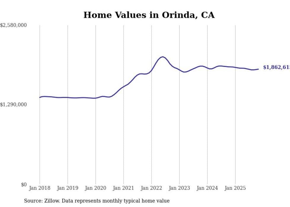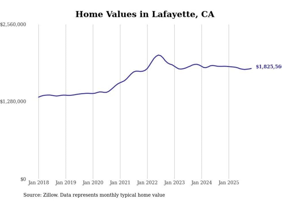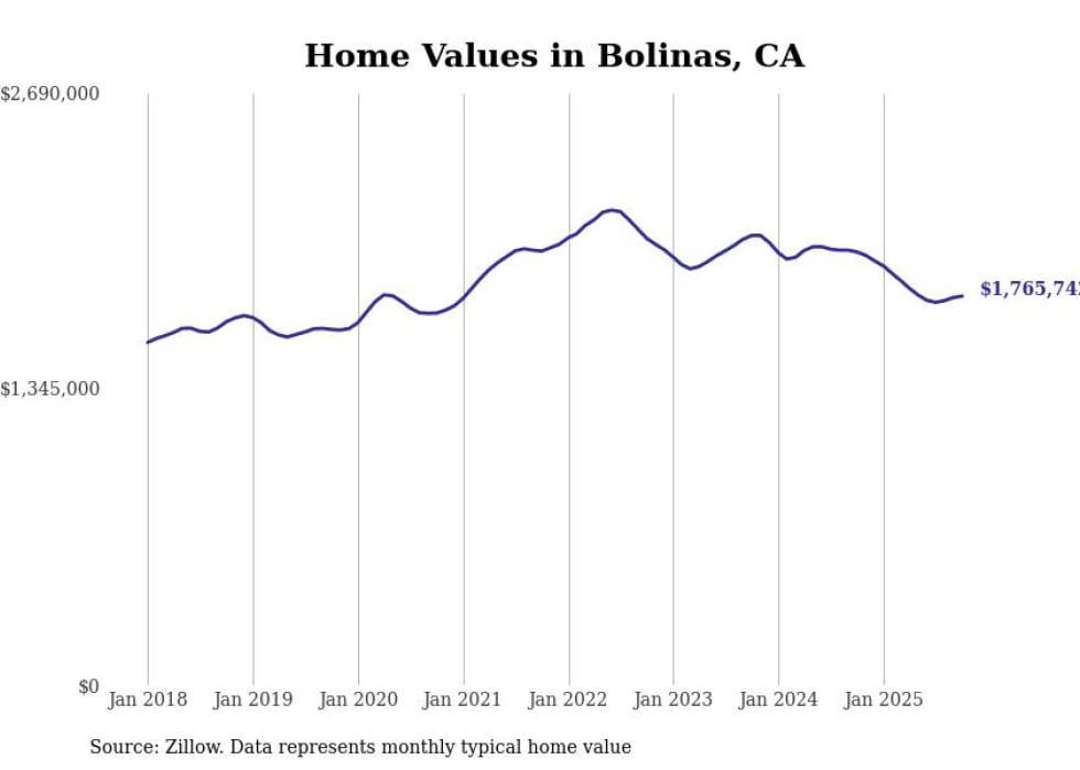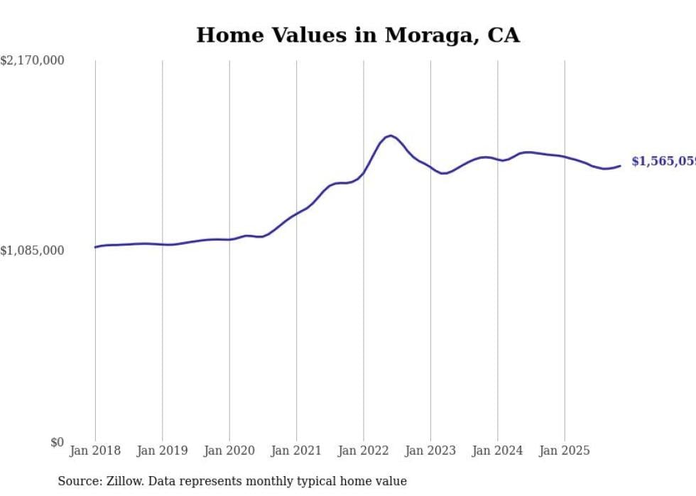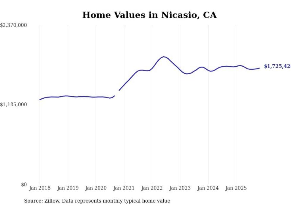 Stacker compiled a list of cities with the most expensive homes in the San Francisco metro area using data from Zillow. Charts show the monthly typical home value since January 2018. Data was available for 95 cities and towns.