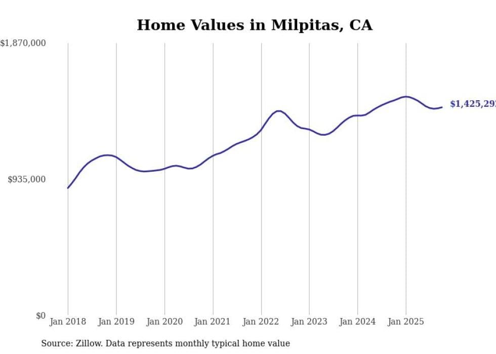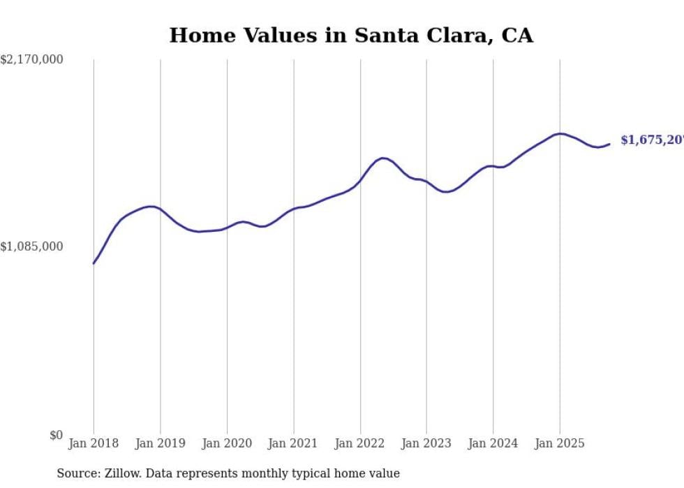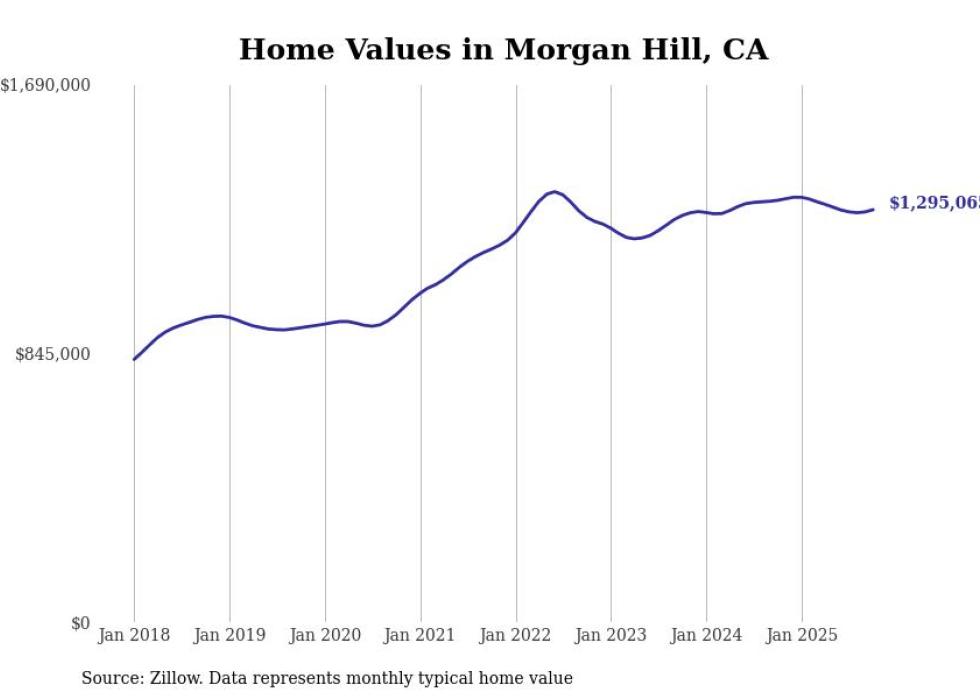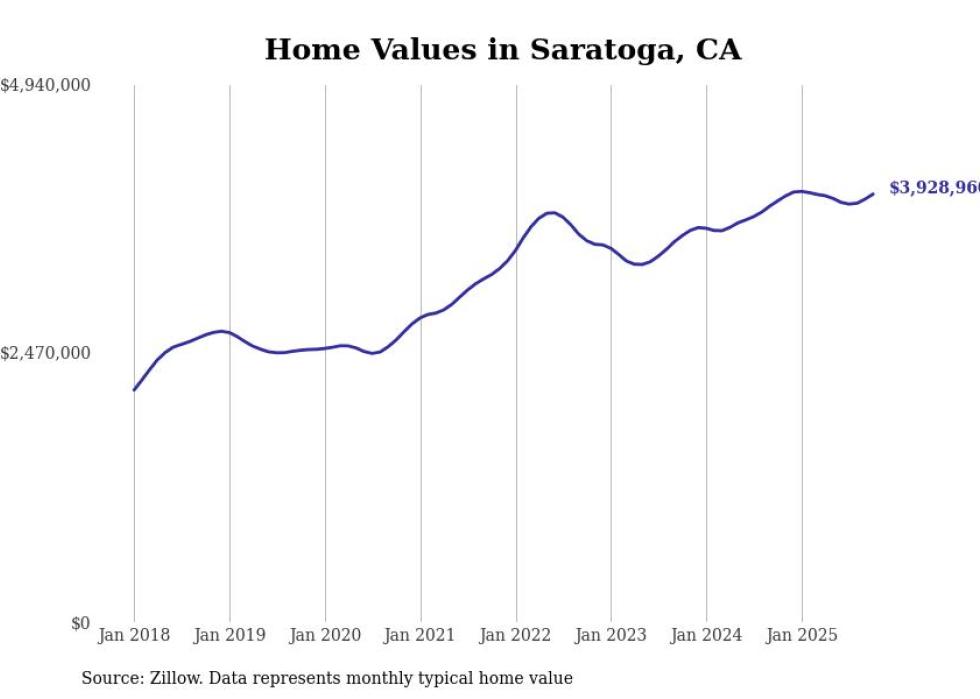 Stacker compiled a list of cities with the most expensive homes in the San Jose metro area using data from Zillow. Charts show the monthly typical home value since January 2018. All 20 cities and towns with data available were included in the list.