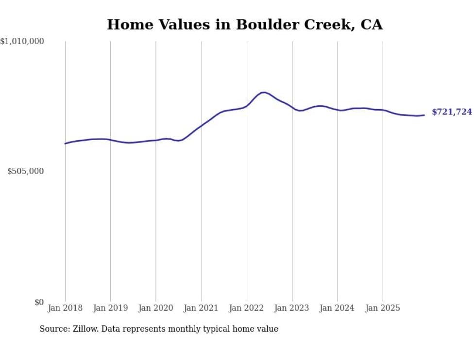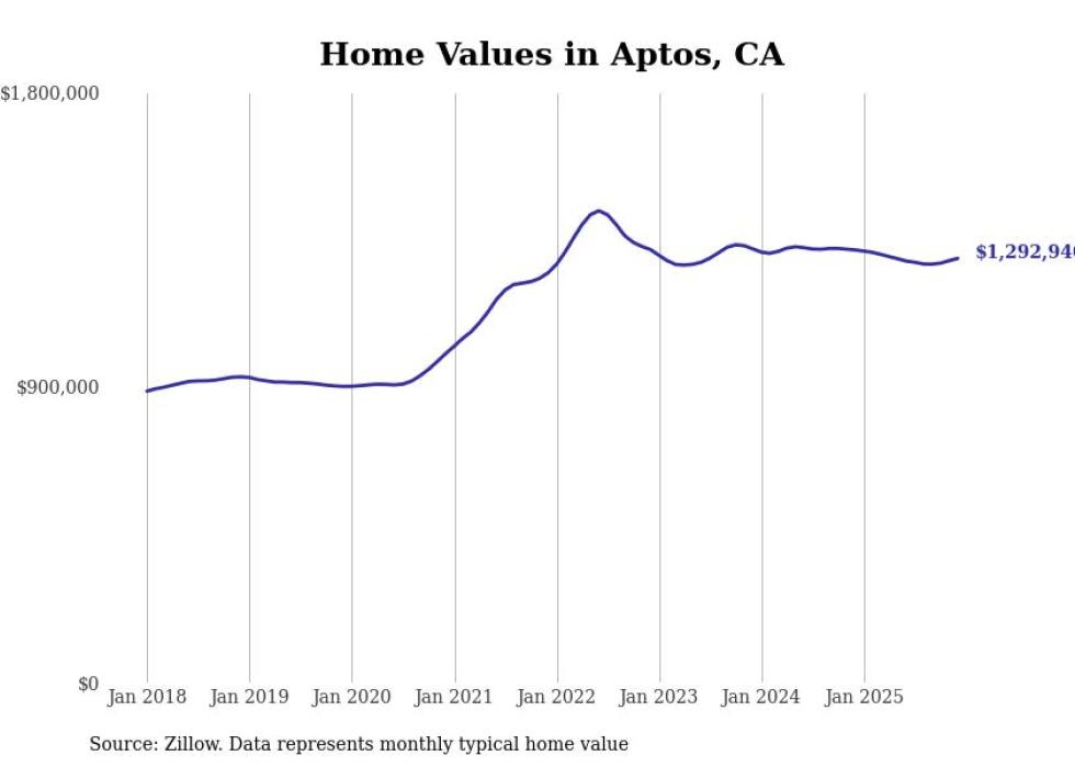 Stacker compiled a list of cities with the most expensive homes in the Santa Cruz-Watsonville, CA metro area using data from Zillow. Charts show the monthly typical home value since January 2018.