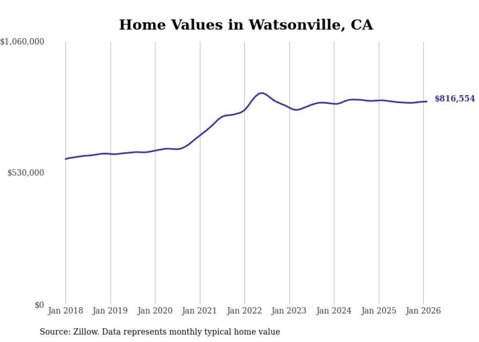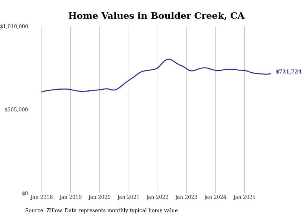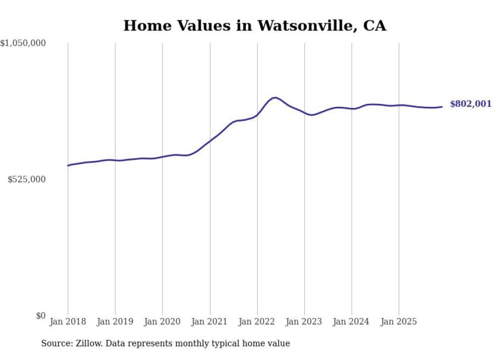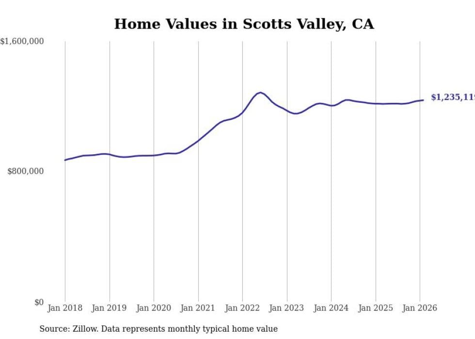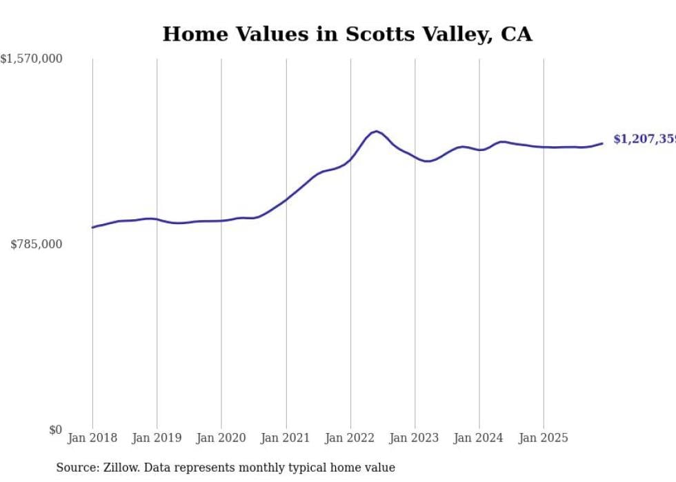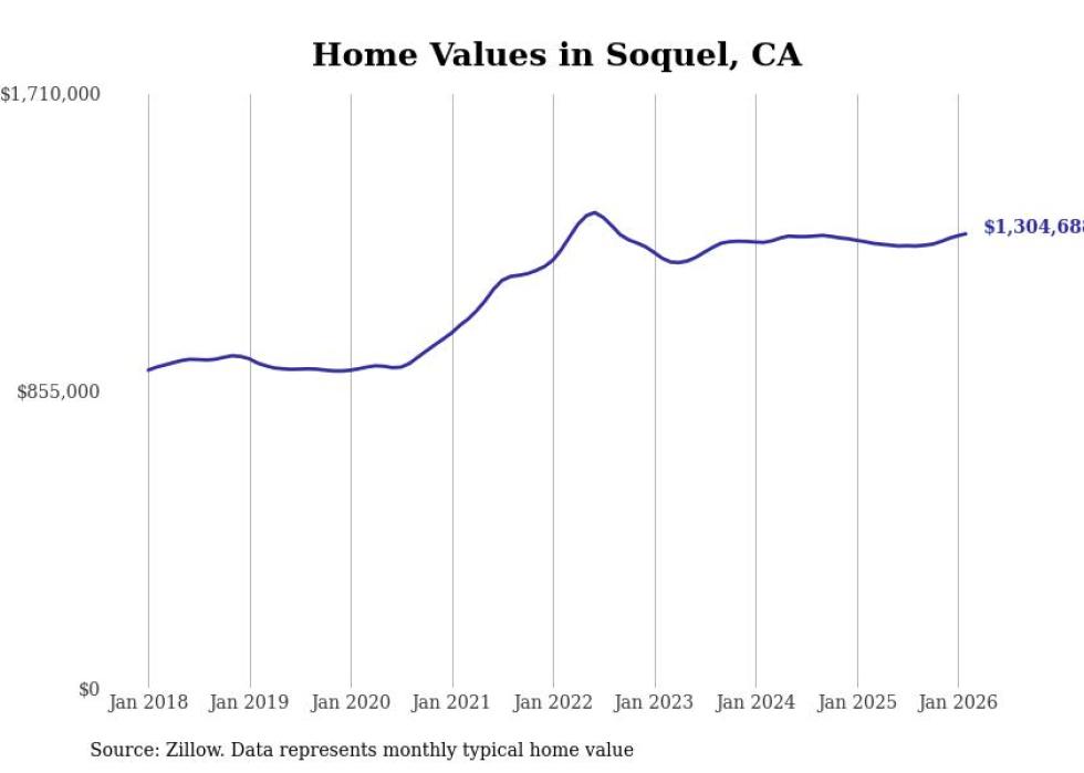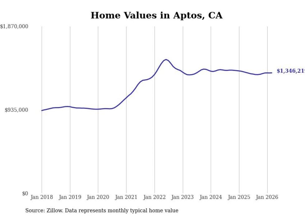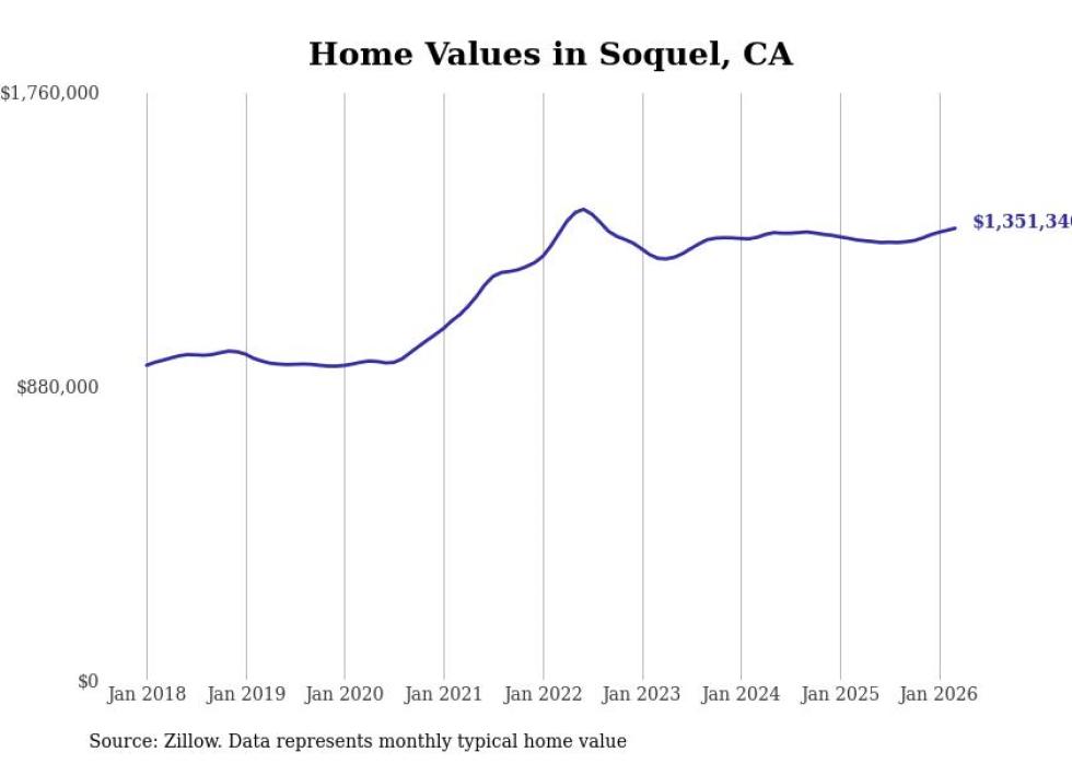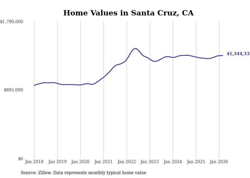 Stacker compiled a list of cities with the most expensive homes in the Santa Cruz metro area using data from Zillow. Charts show the monthly typical home value since January 2018. All 10 cities and towns with data available were included in the list.